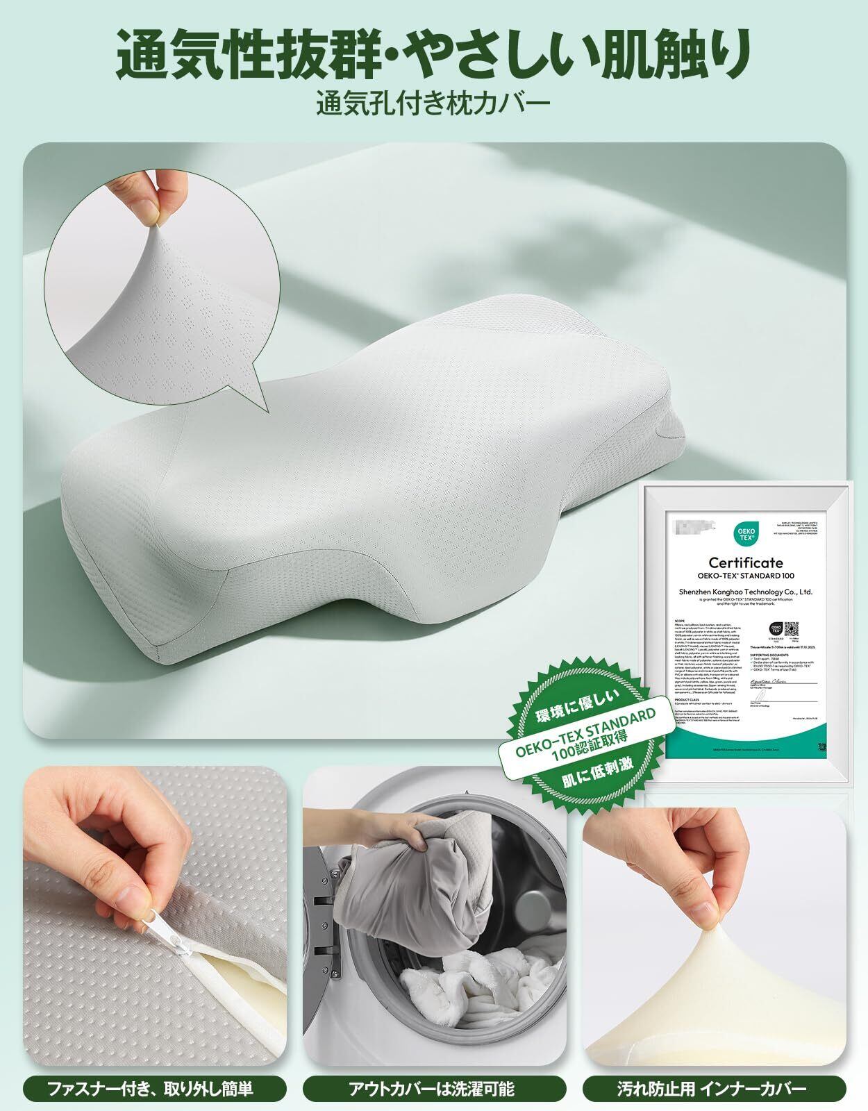 【二重保護&洗える快適な枕アウトカバー】 Tillmulyaの安眠枕 pillow は従来の単層カバーではなく、インナーカバー(固定式)とアウトカバー(脱着式)の二重構造を採用。外側の冷感カバーは通気孔が多数配置されており、肌さわりが快適で蒸れにくい設計。内側カバーが詰め物への汚れの浸透をガードします。ウレタン自体の劣化も保護できます。一年中通して快適にお使いいただけます。 注意:アウトカバーは洗濯可で、枕本体は洗濯不可です。