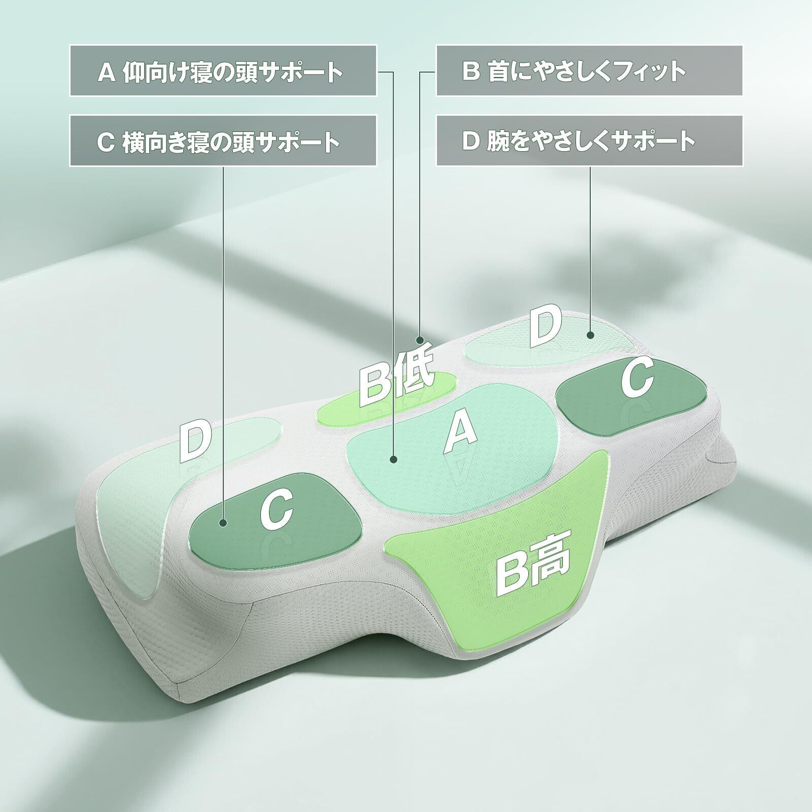 【高さ調整可で低め/高め自由選択】当社の安眠枕 pillowはは2段階の高さ(低い側は8cm、高い側は15cm)設定が可能。まくらの高さを自分好みにカスタマイズ!ご自身の体型に合わせて低めの枕と高めの枕を自由に切り替えることができます。高枕派・低枕派どちらも納得の快眠サポートを実現。 ヒント:この枕の一番高い部分(15CM)でも高さがまだ足りないと感じる場合は、下にタオルを敷いて高さを調整することができます。