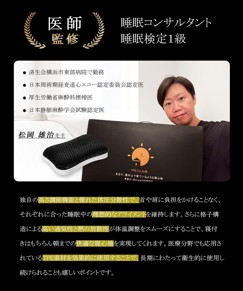 【ご使用前の注意事項】本枕はTPE素材と内蔵活性炭を使用して製造されているため、開封時には素材本来のわずかなにおいや、枕表面に活性炭の粒子が浮いている場合がありますが、品質に問題ありません。ジェル本体は洗浄後に乾きやすいので使用前に一度洗うことをお勧めします。