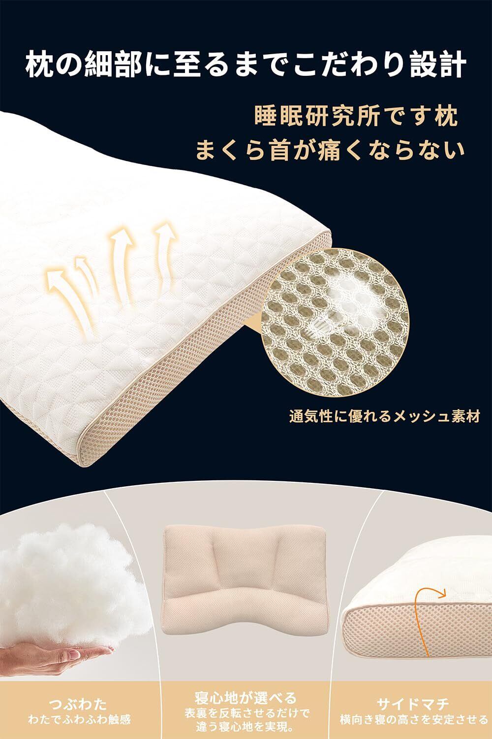 ️ 通気性抜群ーでムレにくく清潔! 立体構造による通気性と吸湿性に優れたのカバーで、一晩中サラッとした快適さ。蒸れや寝苦しさを軽減し、清潔な状態を保ちます(※まくら丸洗い可能で衛生的です)。