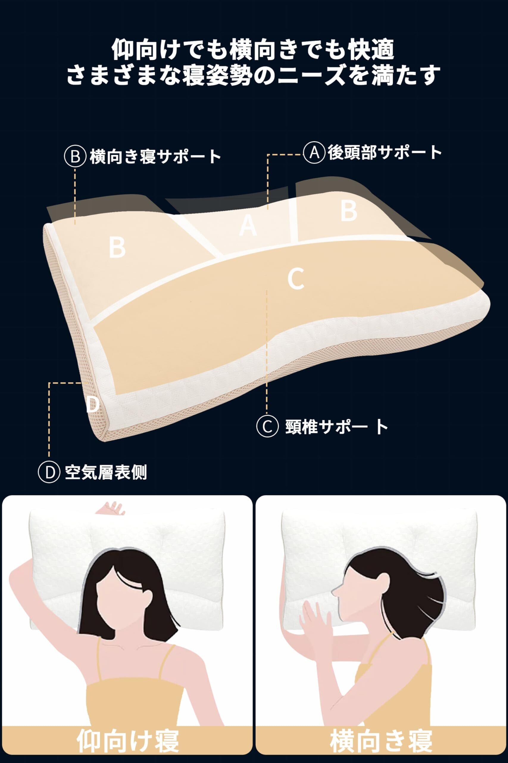 ✨ 肩・首の痛みやいびきを軽減する立体設計! 首と肩にかかる負担を分散させる立体構造が、寝返りの多い横向き寝や仰向け寝でもフィット。首の自然なカーブをサポートし、痛みの軽減と気道確保によるいびき防止効果が期待できます。