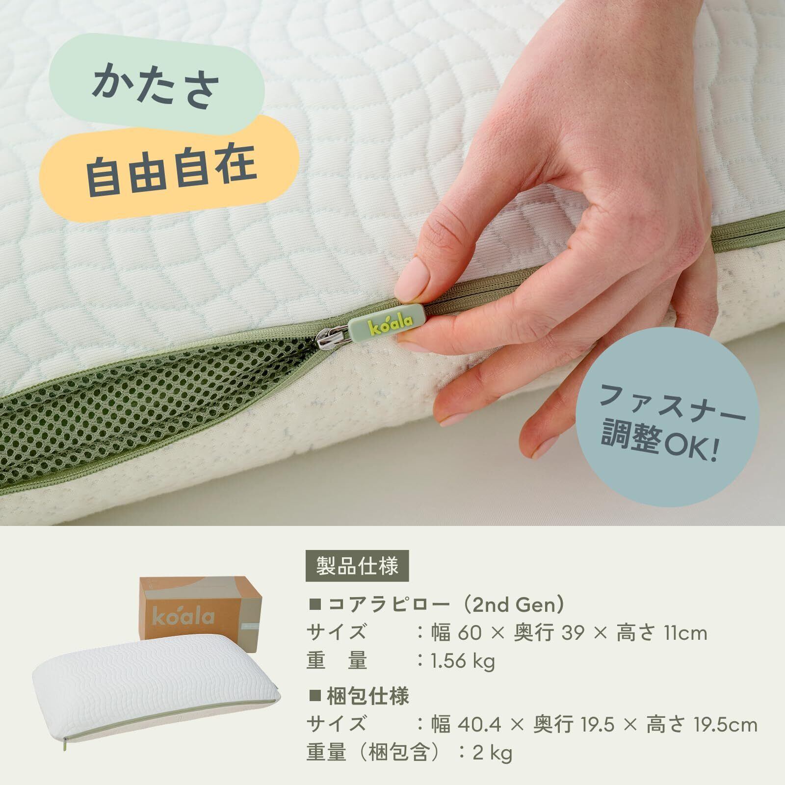 【新着商品】koala (R) ピロー 枕 まくら 【コアラピロー 2nd Gen】 幅60x奥行39x 高さ11cm 硬さ調整可能 洗える リバーシブルカバー付き 首サポート 横向き 仰向け 通気性 吸湿性 120日トライアル期間 メーカー (日本標準サイズ)