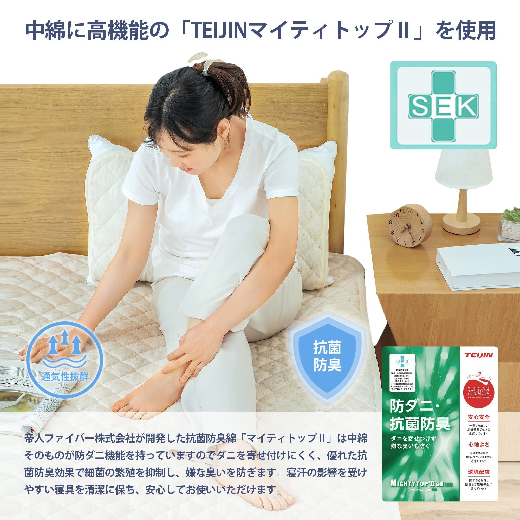 【天然素材・TEIJIN(帝人)中綿使用】レーヨン繊維も麻繊維も安全で健康な天然繊維であり、自然界における天然の環境保護素材でもあり、環境にやさしいと同時に、体の健康にもよいです。中綿に高機能の「TEIJINマイティトップⅡ」を使用。帝人ファイバー株式会社が開発した抗菌防臭綿『マイティトップⅡ」は中綿そのものが防ダニ機能を持っていますのでダニを寄せ付けにくく、優れた抗菌防臭効果で細菌の繁殖を抑制し、嫌な臭いを防ぎます。寝汗の影響を受けやすい寝具を清潔に保ち、安心してお使いいただけます。
