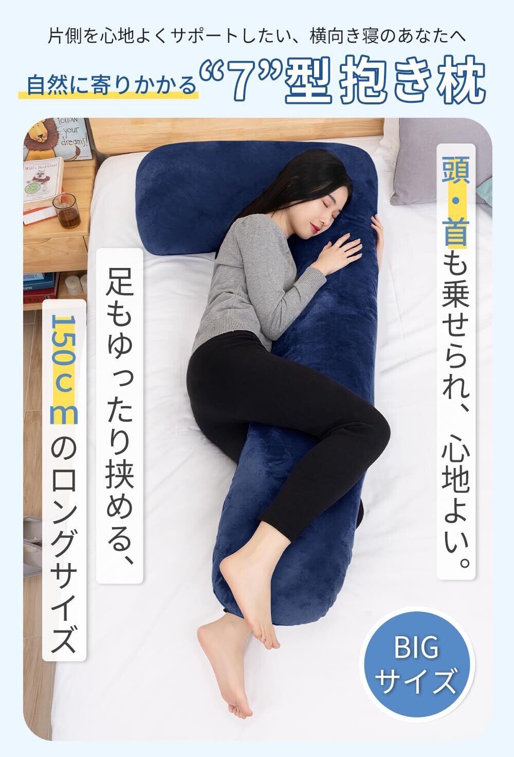【2022最新】AngQi 抱き枕 だきまくら 男性用 大きいサイズ 150cm 男女兼用 妊婦用抱き枕 妊娠用 横向き寝 枕 クッション マタニティ 抱きまくら 等身大 マイクロファイバー生地 7型 ダークブルー