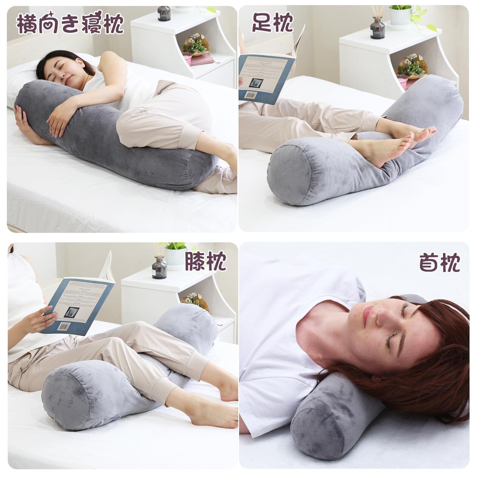 【多機能抱き枕】シンプルながら機能的な円筒形状の抱き枕は、寝室のインテリアをクラスアップさせます。頭枕、足枕、腰枕、読書枕、横向き寝枕などとして、様々なシーンで活用できます。