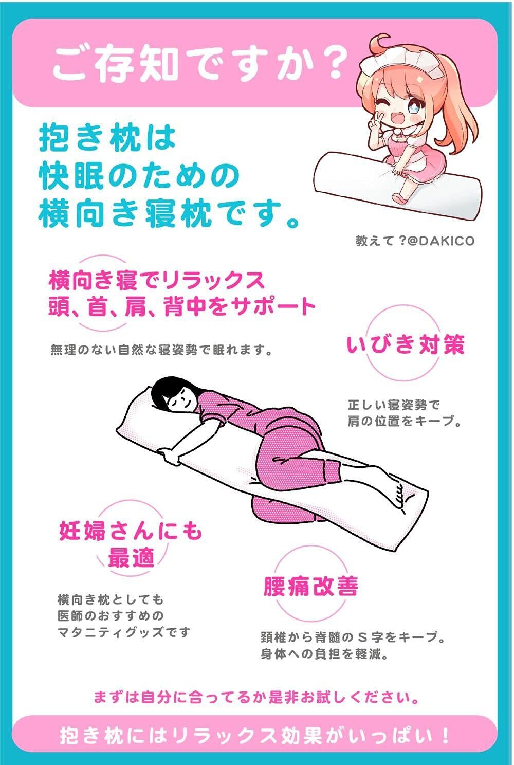 【横向き寝対策】 抱き枕を使って眠ると、腰や肩への 負担がかかりにくくなります。横向きに寝るときに体 や腕の重みを分散でき、リラックスして眠れ、両膝で 抱き枕を挟む事で安定した姿勢で眠る事ができます。 【気持ちいい感触】 抱き枕の側生地は桃の肌のような 感触したピーチスキンを採用しており、ふわふわ手触 り、肌に優しいです。滑り止め加工が付き、カバーと 本体の一体感が向上しております。