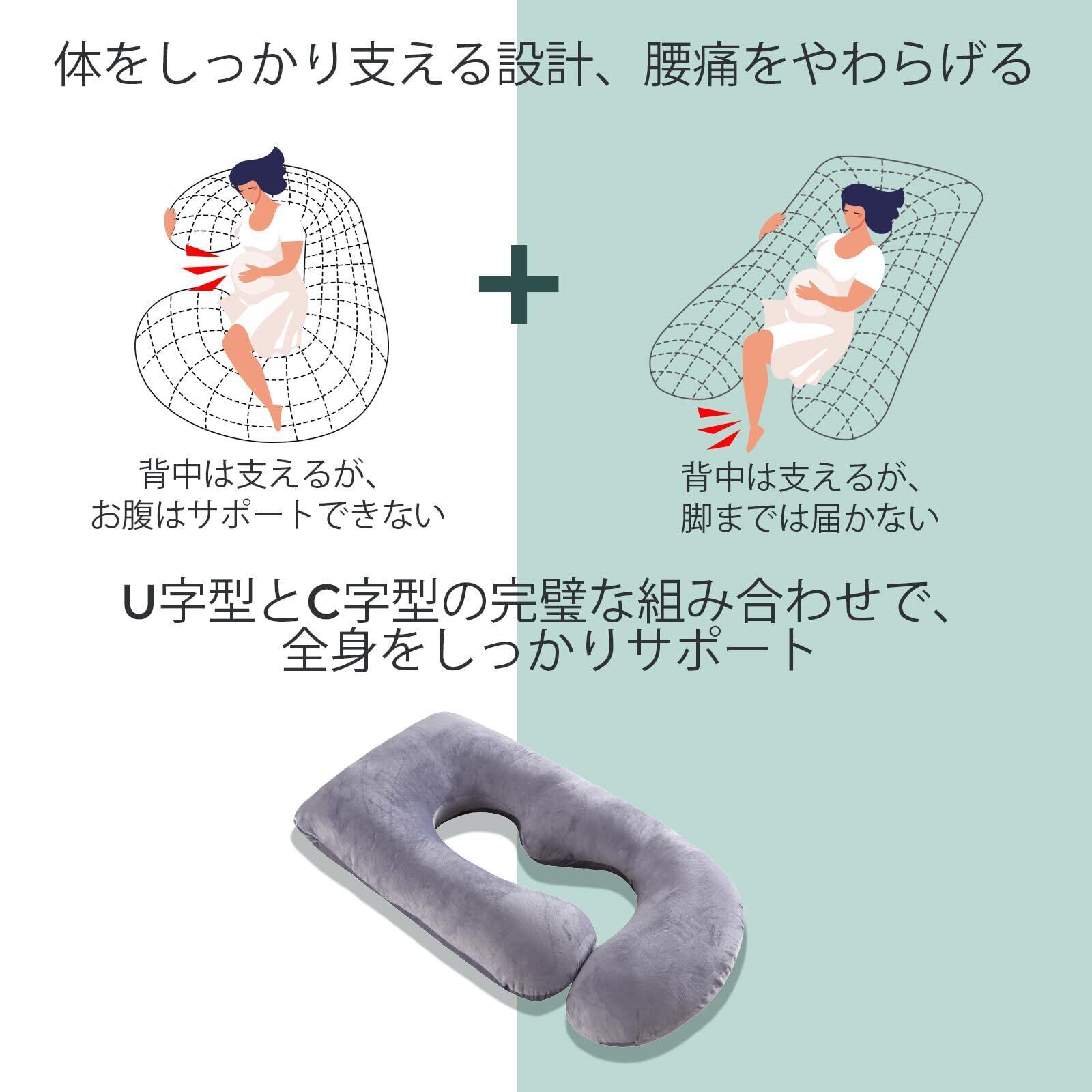 【2022最新】Momcozy U字型 妊婦 抱き枕|横向き寝対応 多機能 マタニティ枕・授乳クッション|だきまくら 女性産前産後兼用|腰楽・背中サポート|洗えるカバー付き 57インチ グレー