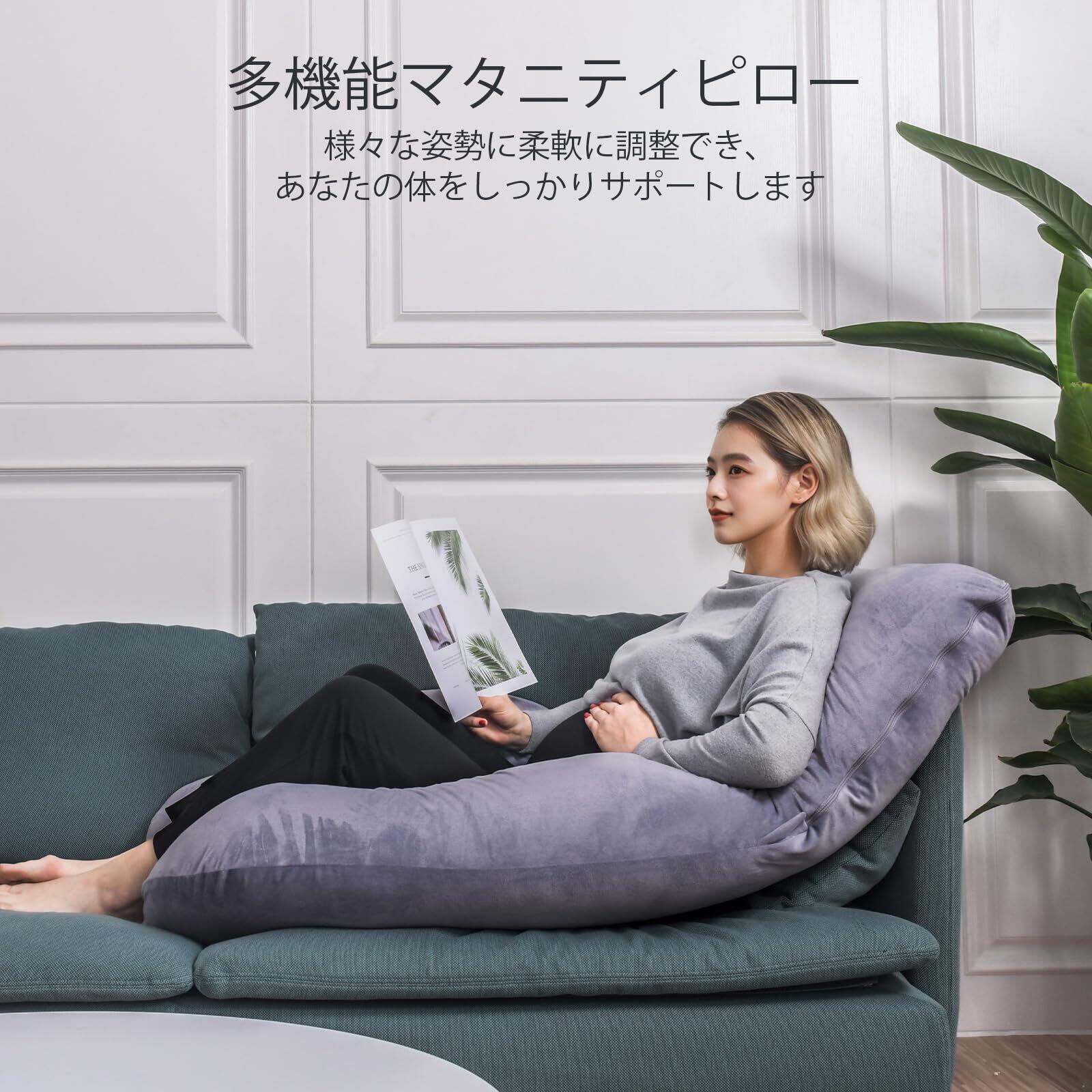 使い方いろいろ:授乳クッションや読書枕、テレビ鑑賞時のリラックスピローとして活躍。長時間座るときは腰枕や座布団としても使用可能。自由に形を変えられるマタニティピローで、お腹・脚・ひざをしっかり支え、快適な姿勢をサポートします。