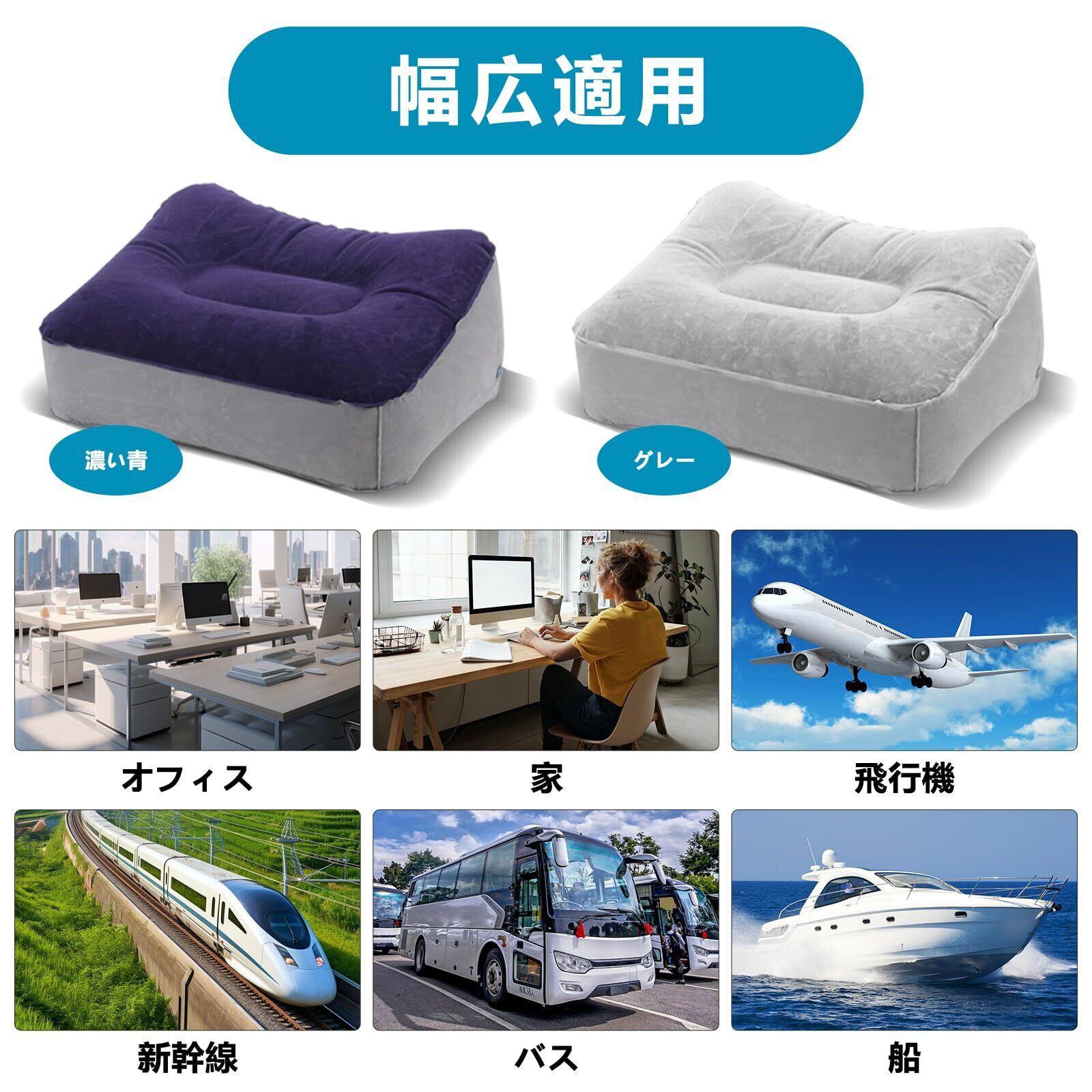 フットレストエアクッション 足枕 足置き 車用/飛行機用/旅行用/ご自宅/オフィス リラックス 携帯便利 ソフトタッチ