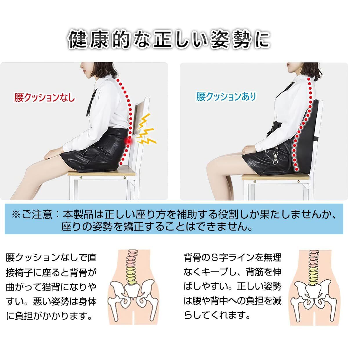 【改良された新世代、低反発腰楽クッション】独自の立体構造で、腰や背中に優しくフィットし、優れた体圧分散により背中全体への負担を減らします。腰をしっかり支えるので背筋が自然に伸びて、背骨をS字型に正しく保ち、安定した姿勢に導いてくれます。