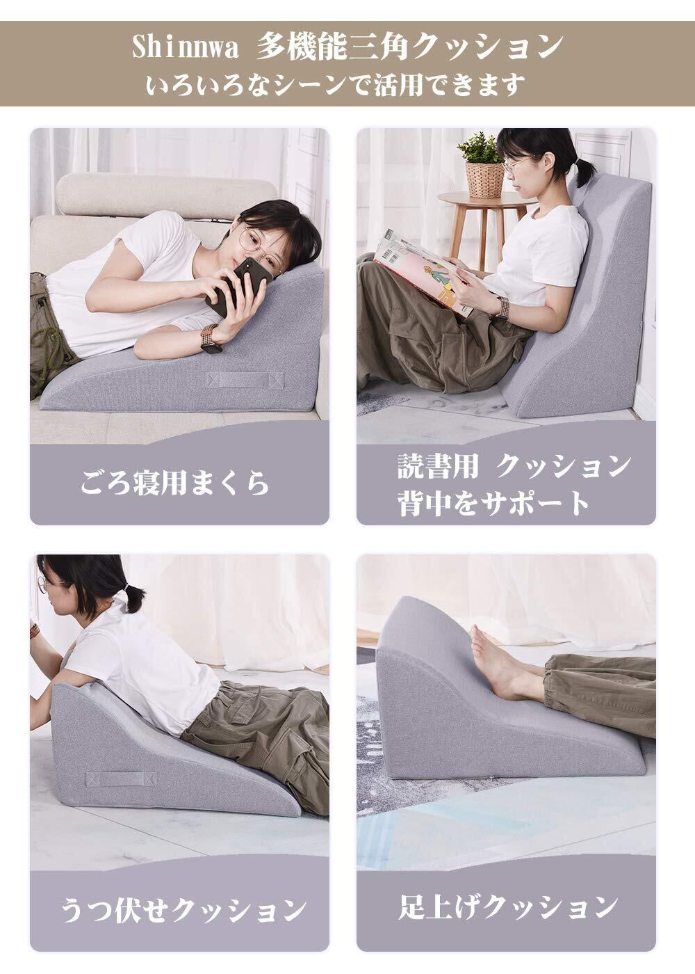 【2022最新】Shinnwa 高反発 背もたれ クッション ベッドの上 三角クッション 三角枕 枕 まくら ランバーサポート 年寄りプレゼント 腰当てクッション 腰枕 就寝用 専用 読書用 テレビ腰枕 洗えるカバー ループ付き グレー