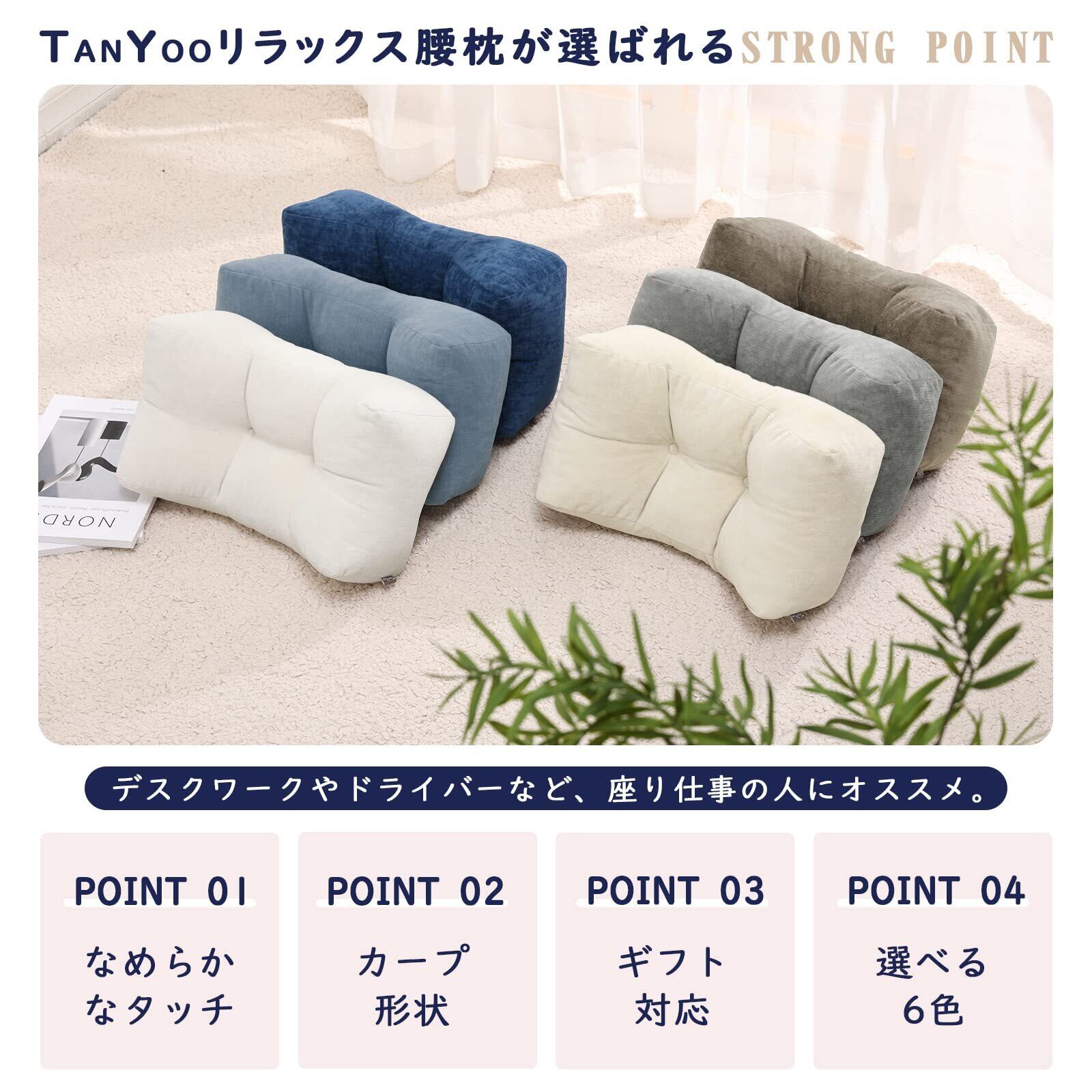 低反発ウレタンチップを採用:中材には低反発ウレタンチップを採用します。低反発ウレタンを細かく粉砕した詰め物素材です。ふわふわ&もちもち感、通気性もばっちり。ギュッと押すと、低反発ウレタン特有のしっとりとした感触が実感できます。しっかりと体にフィットし、腰や背中をサポートします。優しく腰を支えることにより、腰の筋肉をリラックスさせ、さらに産後、腰楽に可能です。