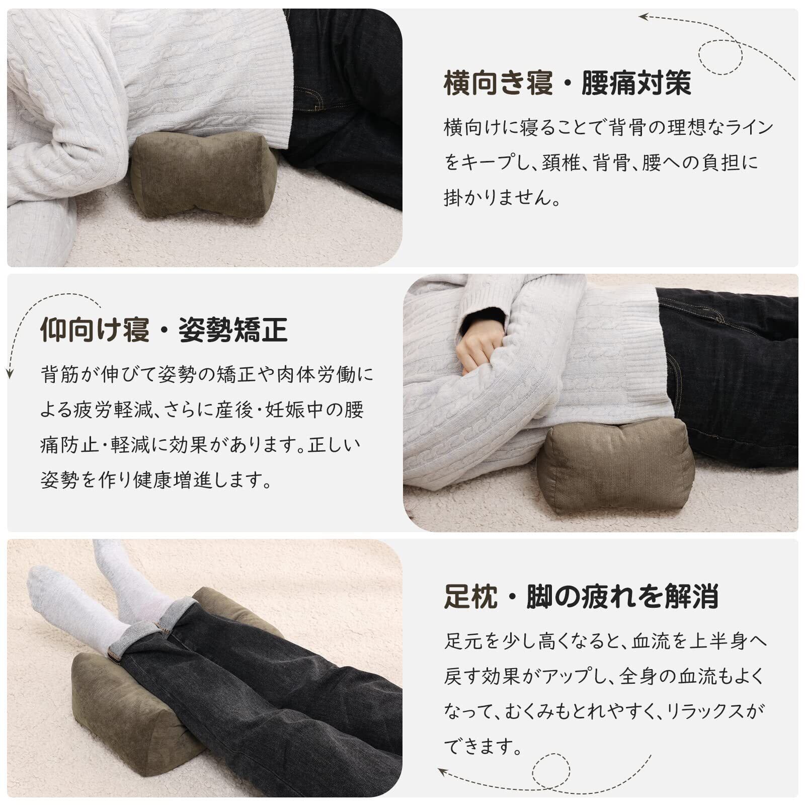 用途が広い:一般的には、座っている時に背もたれと背中の間に隙間があると、そのままでいったら、腰が疲れて徐々に猫背になりがちです。この背もたれクッションを椅子と腰の間に置くことで、隙間を埋めて、腰を正しいS字カーブに持たせます。長時間座っても疲れにくく、腰痛や背中の負担を軽減してくれ、腰痛の予防にもなります!車中や自宅、オフィスなどいろいろな用途、場所でご使用いただけます。仰向け寝・横向き寝対応、足上げにも、膝下や足元に入れていただいたり、使い方次第でいろいろと体が楽になる方法があるでしょう。