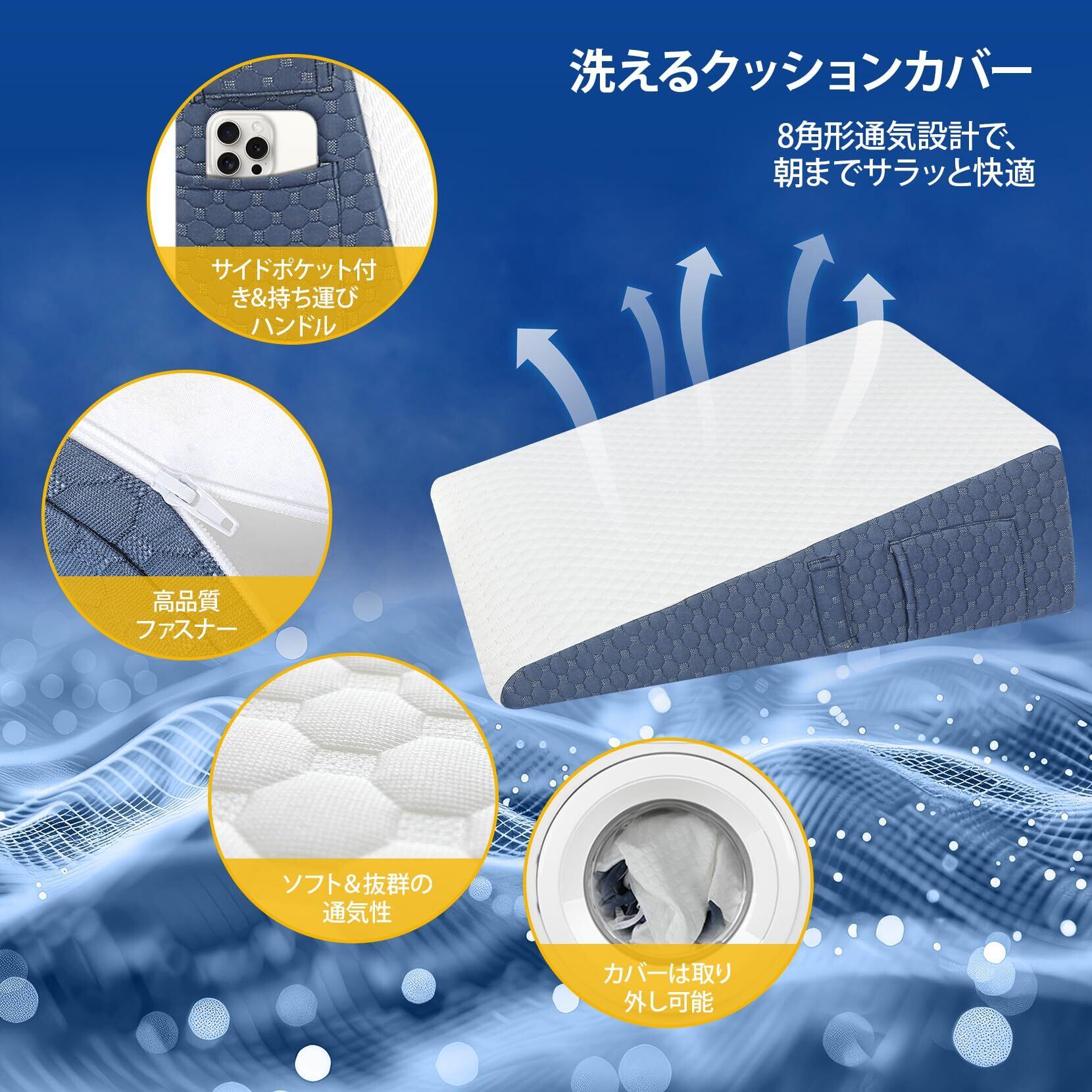 YOLEO 三角クッション 三角枕 傾斜枕 低反発+高反発 OEKO-TEX®認証 背もたれクッション 腰枕 テレビ枕 足上げ 読書用 お年寄り 老人用 洗えるカバー