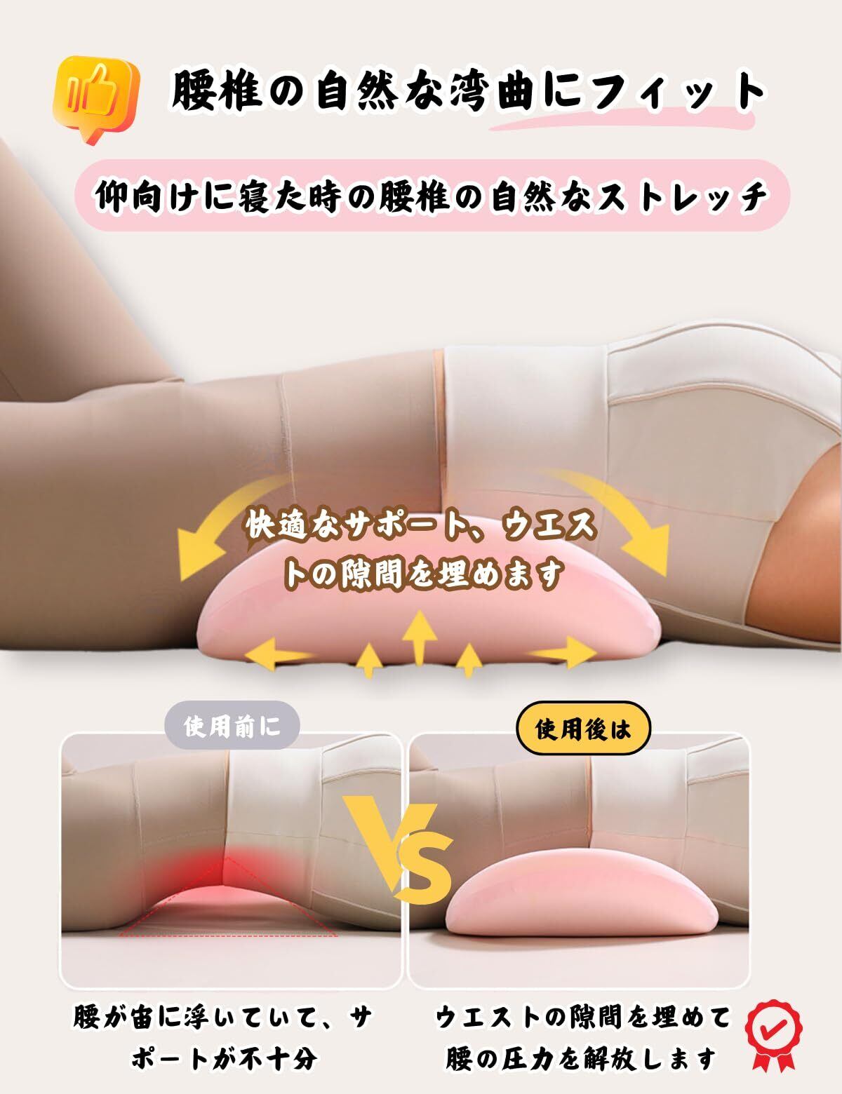 【枕面サイズをアップグレード】睡眠時に仰向けや横向きで寝る状況を考慮して、約49cm×28cm×7.5cm(7.5cmは厚さではなく、底から上端までの高さの測定値です)腰枕の表面の湾曲により、厚さは約4〜5cm。ですのサイズに設計されています。また、4つのエリアに分かれているので、より継続的に腰を伸ばし、腰痛を和らげます。快適な睡眠高さを提供し、正しい腰の姿勢を維持します。足枕としても使用でき、膝や足を乗せることで足にかかる圧力を軽減し、安らかに眠ることができます。