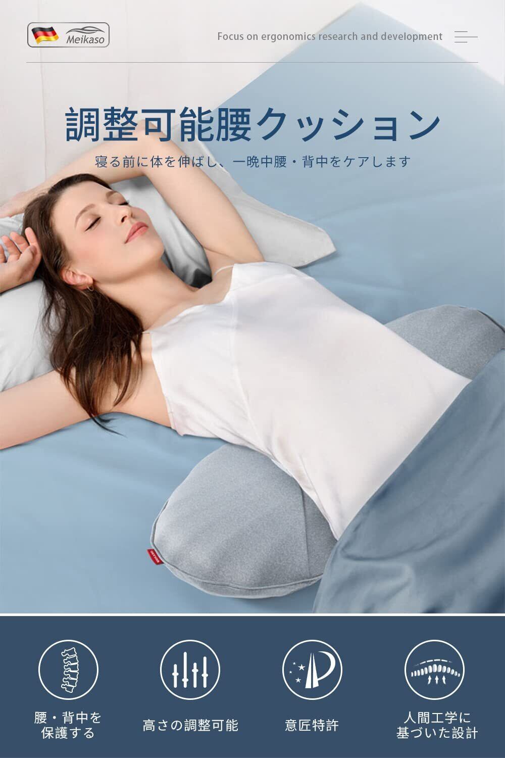 【整体師監修】Meikaso 寝る時クッション低反発 腰クッション腰枕 腰まくら 就寝用腰楽安眠サポート体圧分散 通気性 反り腰 ランバーサポート足腰枕 足のむくみ 寝る時 膝枕 高さ調節可能 カバー洗える運転手/サラリーマン/高齢者に適用 敬老の日 ギフト