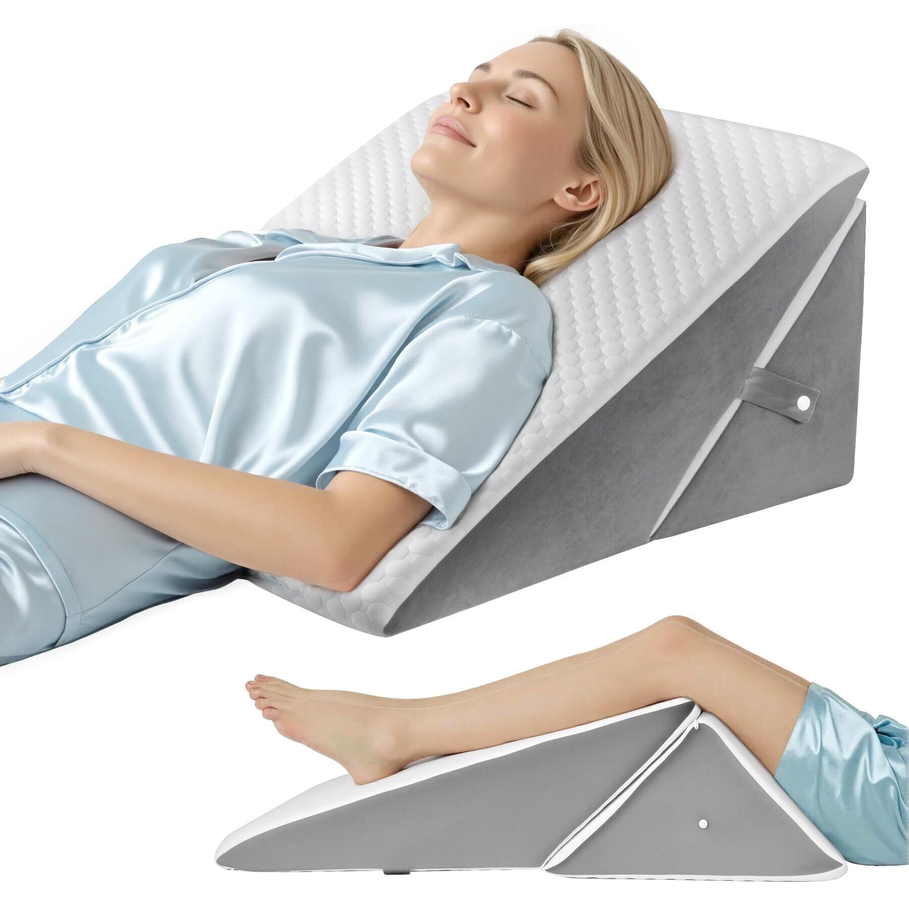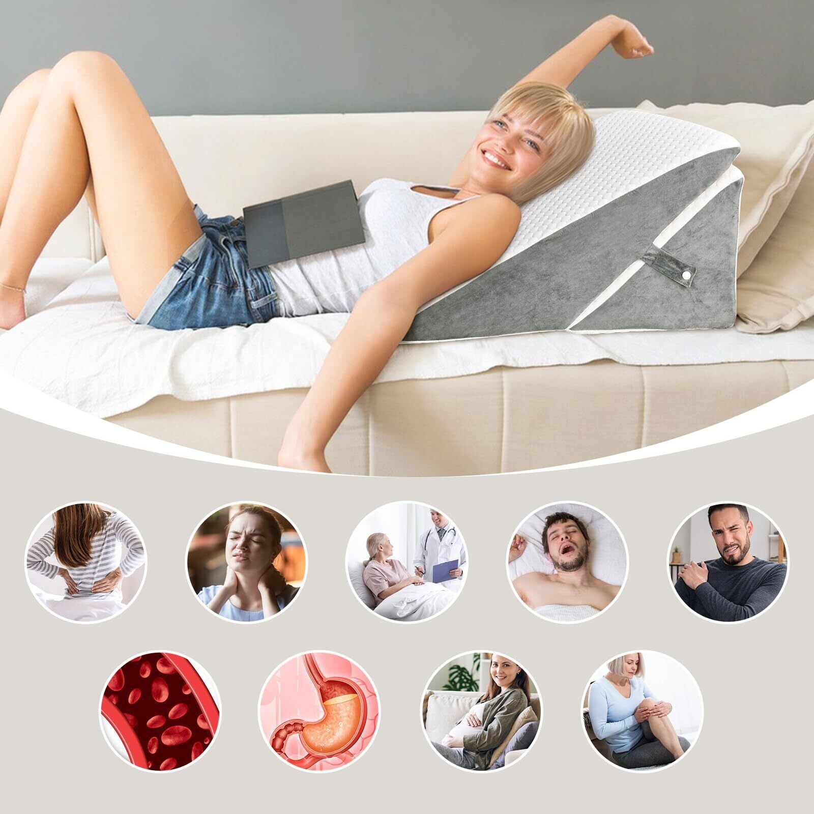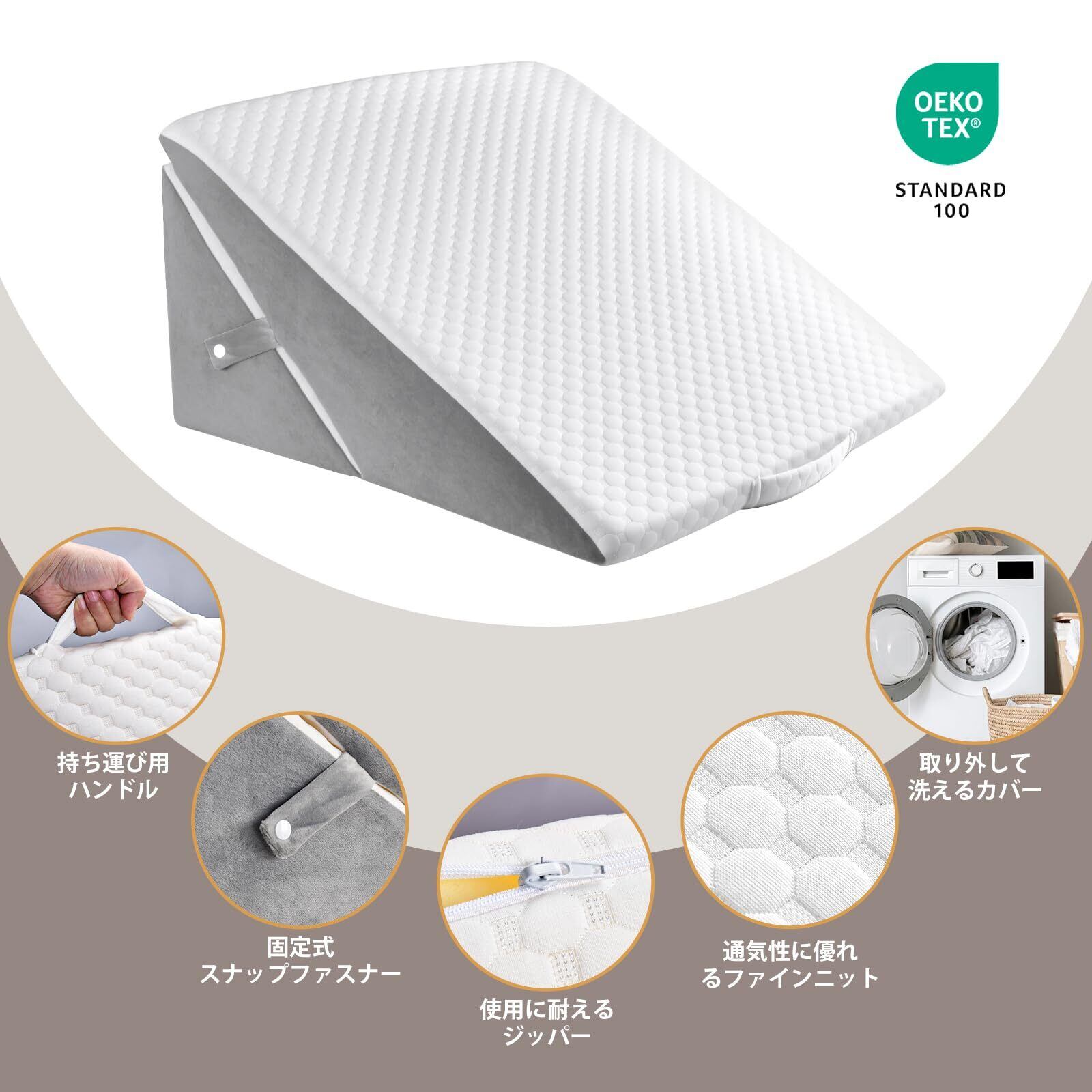 【お手に入れ簡単】ウェッジ枕のカバーはジッパー付きで、ソフトで通気性がよく、いつでも取り外しができ、汚れたら手洗いまたは洗濯機で洗うことができます。腰枕には持ち手が付いており、持ち運びや移動が簡単です。お子様やお年寄りにも安心してお使いいただけます