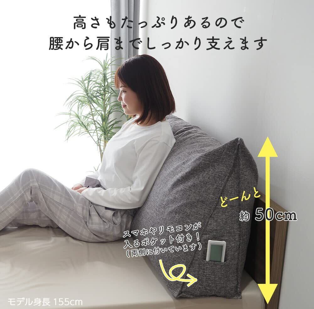 【ベッドアンドマットレス】 背もたれクッション 寛大 シングル(幅97cm) エクリュ 背あて ベッドサイズ 三角クッション 読書 映画鑑賞 寝ながら スマホ 背もたれcushion 三角ピロー ボディピロー シングルサイズ