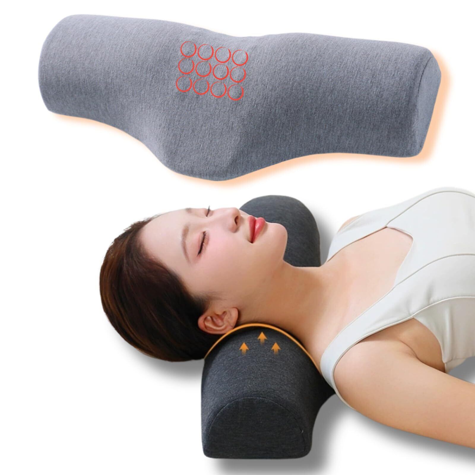 【独立したネックサポート構造 - 緩和とリラックス】横になって首の下に置くだけで、筋肉を深くリラックスさせ、首に柔らかくしっかりとしたサポートを提供し、疲労を軽減し、より早く眠りにつき、睡眠の質を向上させます。