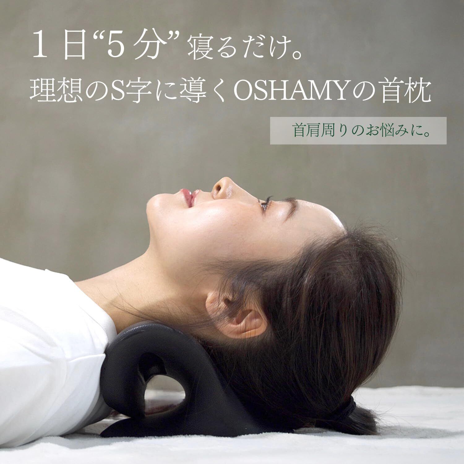 首枕 首 ストレッチ 1日5分 ネックピロー 首 肩 肩甲骨 伸ばす 枕 首まくら 健康器具 OSHAMY V型 (ブラック)