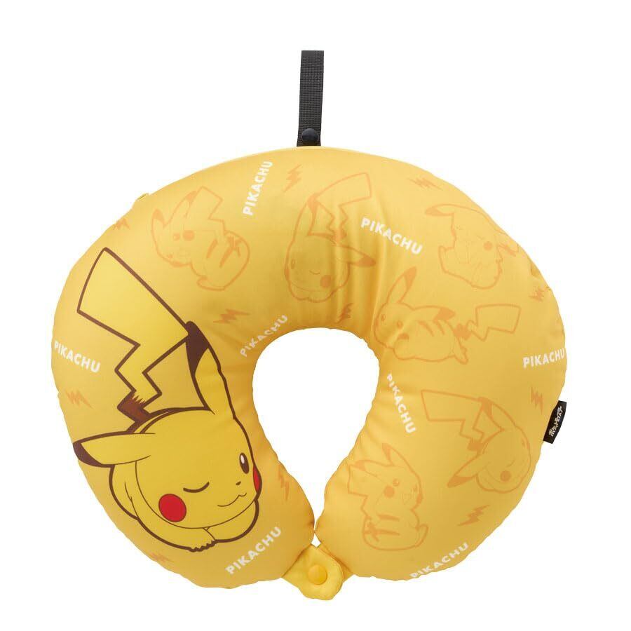 ピカチュウがモンスターボール型のクッションになったり、ネックピローになったりと3WAYで使えるネックピローです