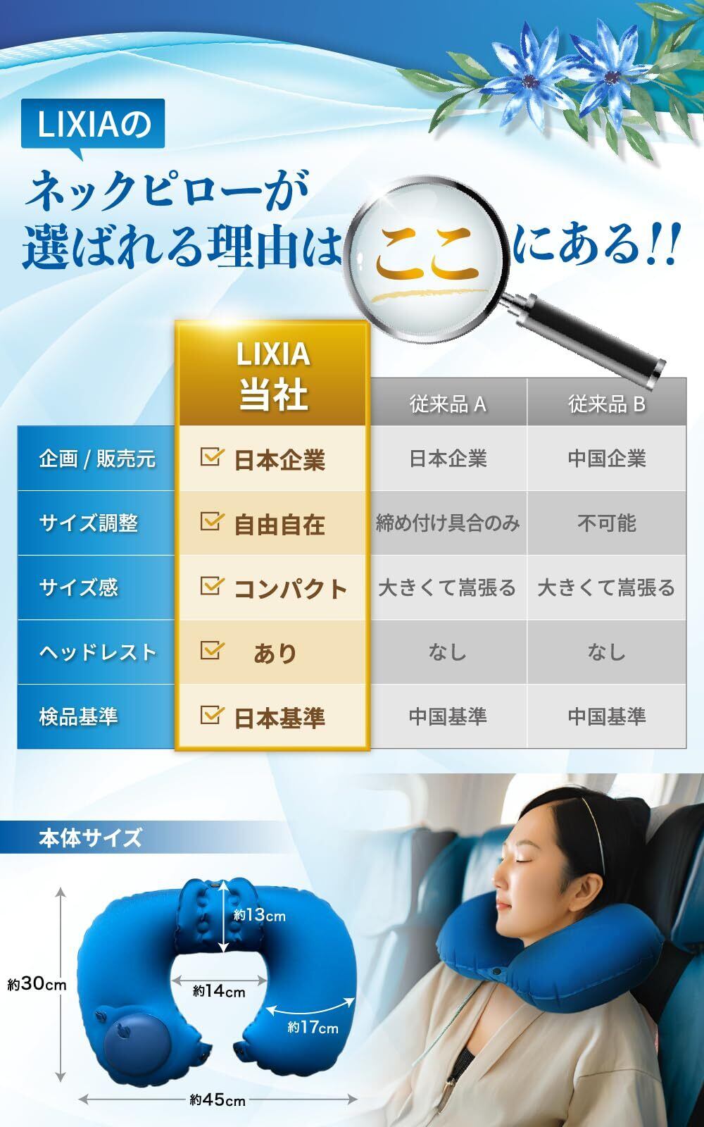 【じゃらん掲載】LIXIA ネックピロー コンパクト ポンプ式 軽量 【ヘッドレスト付き】 飛行機 首枕 旅行用 エアー (電車/飛行機/車などに)