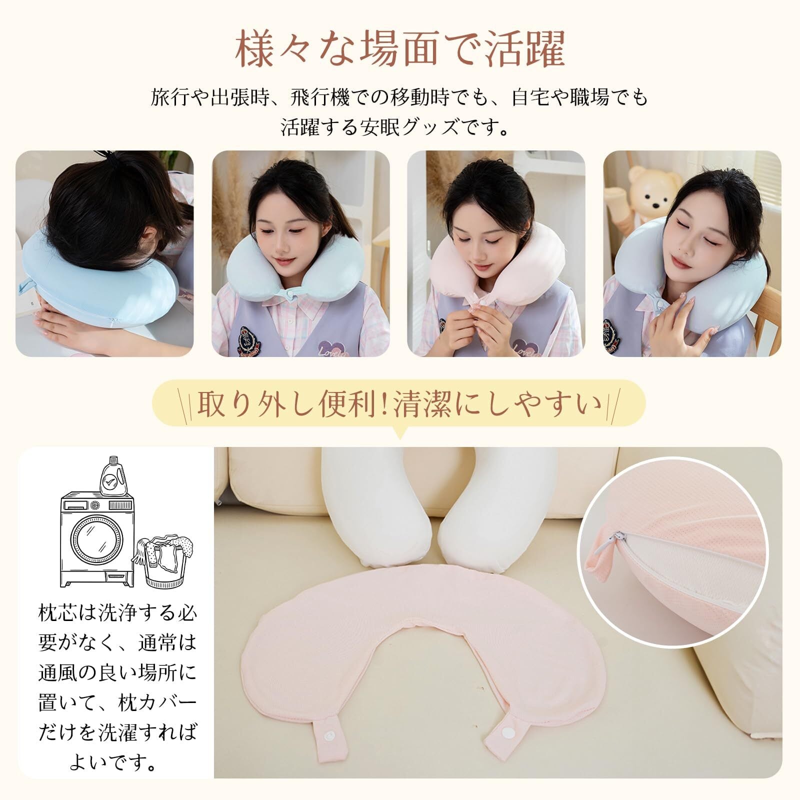 旅行や出張、飛行機での移動時にも、自宅や職場でも活躍する安眠グッズ。枕カバーは取り外しが簡単で、清潔に保つことができます。枕芯自体は洗浄する必要がなく、通風の良い場所に乾燥させるだけで快適な環境を維持できます。