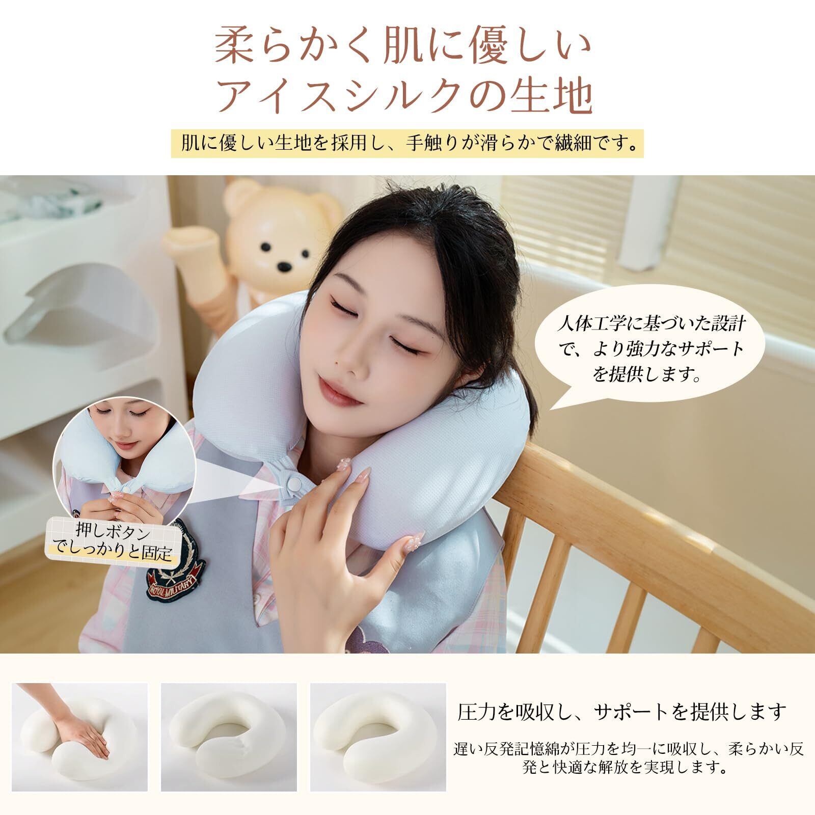Udoric ネックピロー U型まくら 携帯枕 旅行用 通気孔設計 洗えるカバー アイスシルク生地 メモリーフォーム中身 (ブルー)