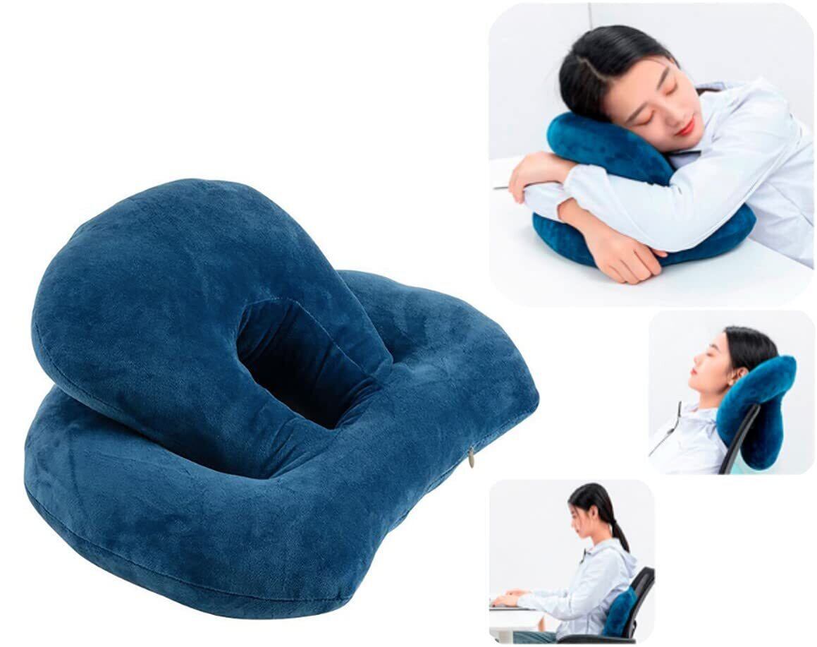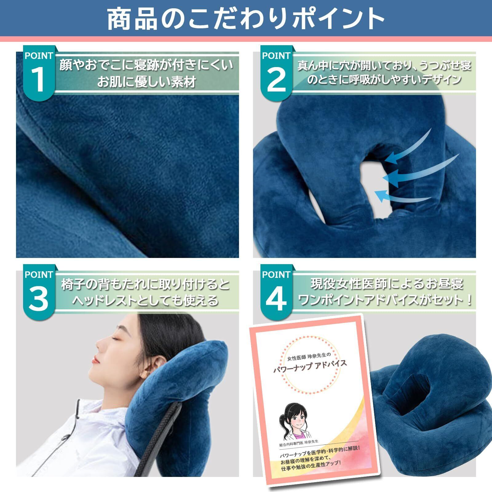 kuros 快眠快息 パワーナップピロー お昼寝枕 うつぶせ寝 会社 オフィス 仮眠 デスク枕 まくら クッション ネックピロー 仮寝 (ブルー)