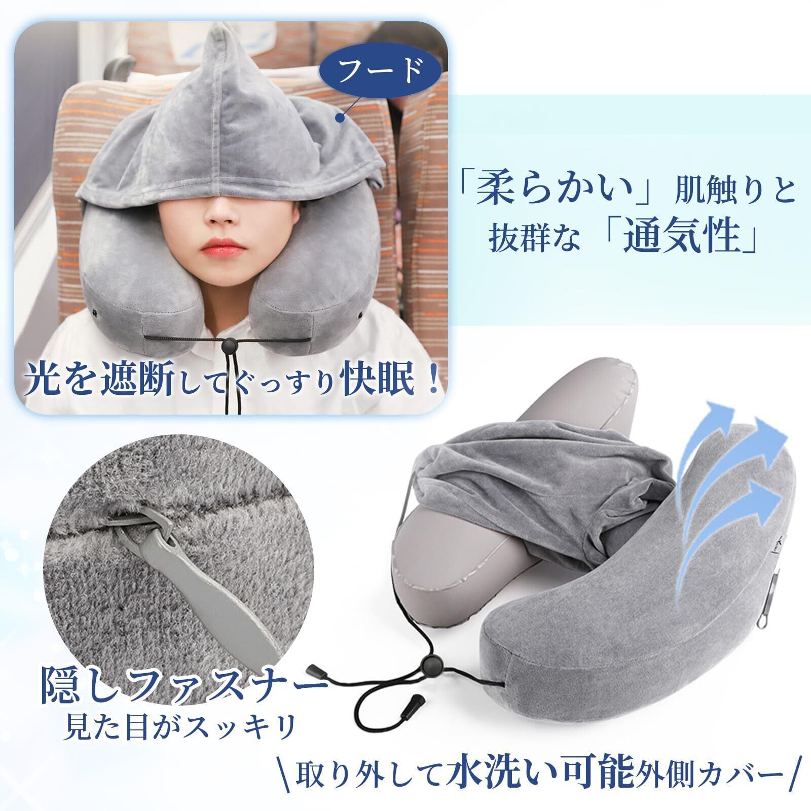 【新春セール】ネックピロー 飛行機 H型 枕 車 新幹線 首枕 首が痛くならない 車 夜行バス 低反発 クッション 超軽量 トラベルピロー 旅行 エアーピロー フード付き 空気枕 仮眠 快眠ピロー オフィス/出張/新幹線/飛行機/夜行バス 携帯枕 旅行グッズ コンパクト 収納バッグ付き (エアー首枕)