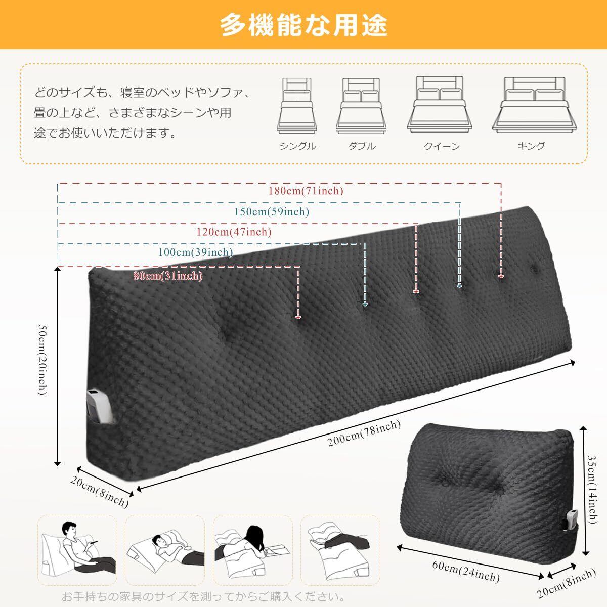 豊富なサイズ展開:サイズ(単位:cm)(誤差±2.5cm)(長さ×厚み×高さ):60×20×50、80×20×50、100×20×50、120×20×50、150×20×50、180×20×50、200×20×50。コンパクトサイズはソファや畳の上の読書用クッションとしても最適です。