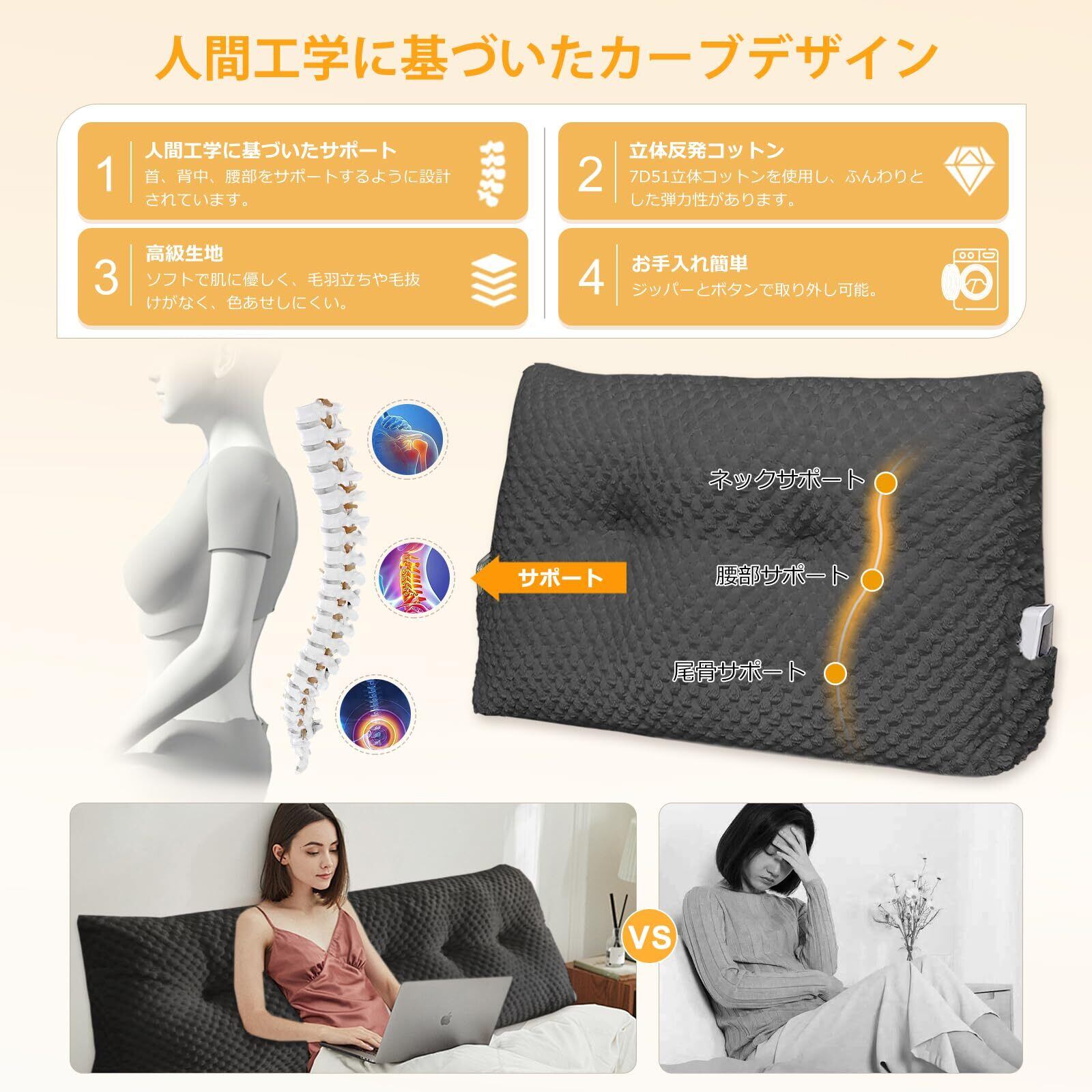 【特価セール】単色 高反発三角枕 大きいクッション,背もたれ位置サポート読書枕, ランバーサポート 三角クッション 就寝用 足上げ 体位変換 枕 テレビ枕 なだらか枕 高級ウール素材,両サイドポケット,取り外し可能なジャケット,カバー洗える(ブラック-200x20x50cm)