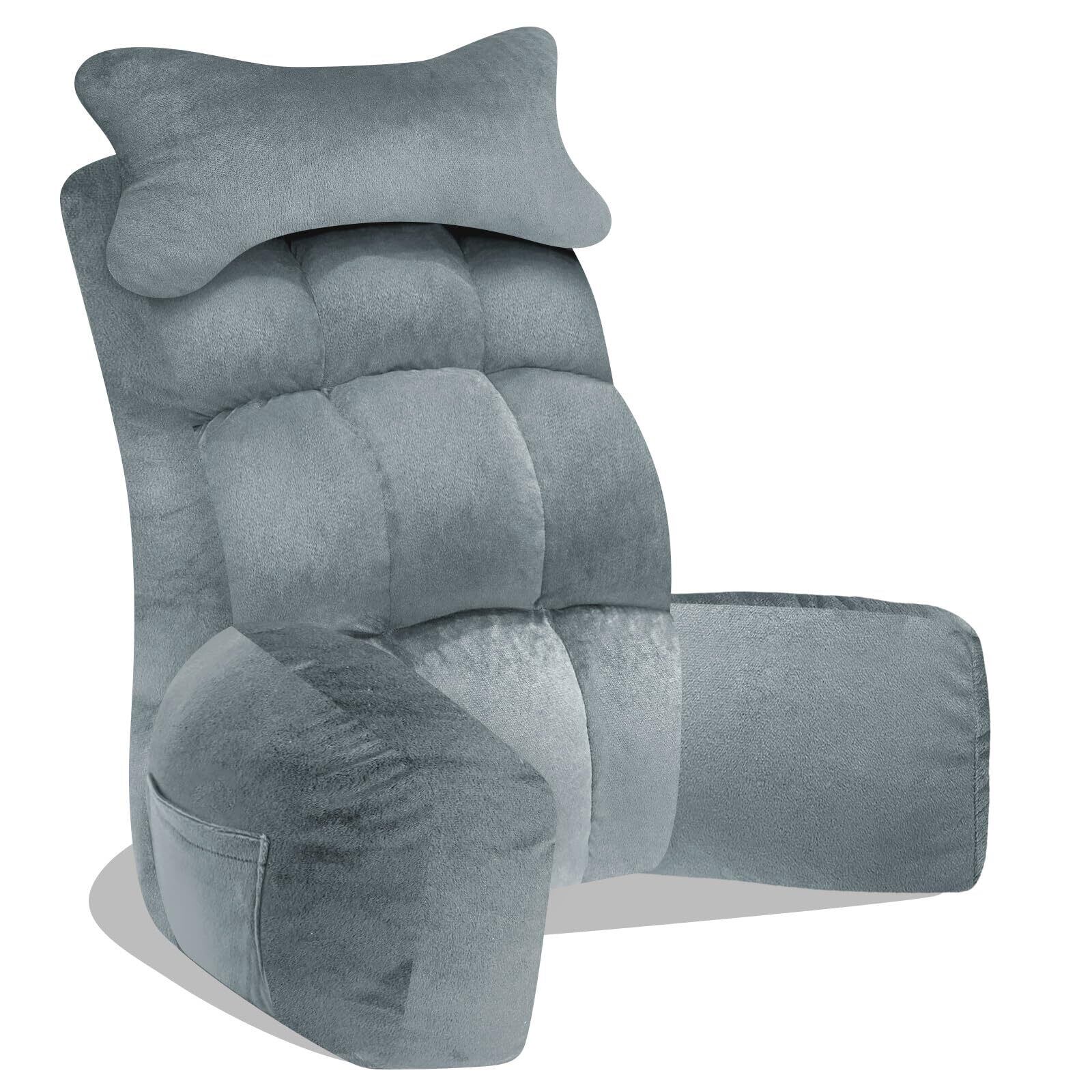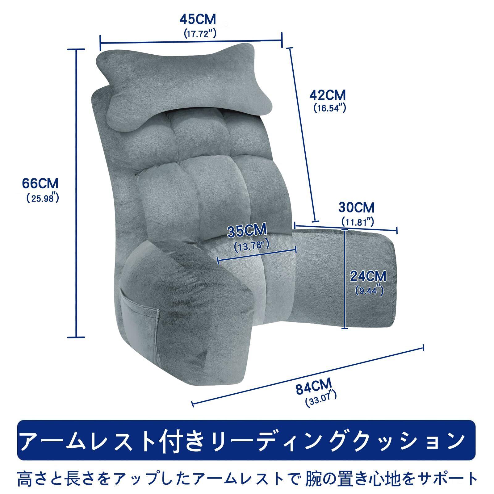 背もたれ クッション,アームレスト付き読書枕 大人向けサポートピロー,ベッド&ソファ用 テレビ枕・ゲームやリラックスに最適なリーディングクッション(すみはいいろ,66*35cm)