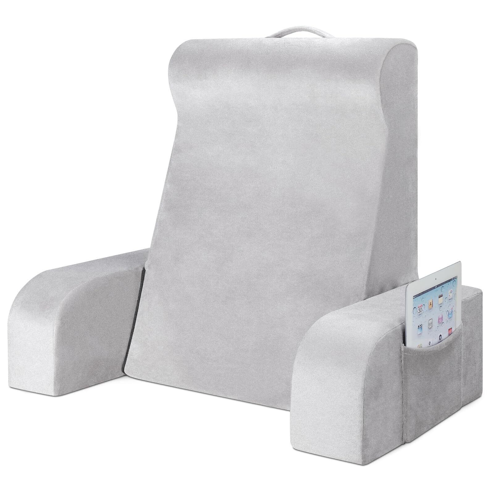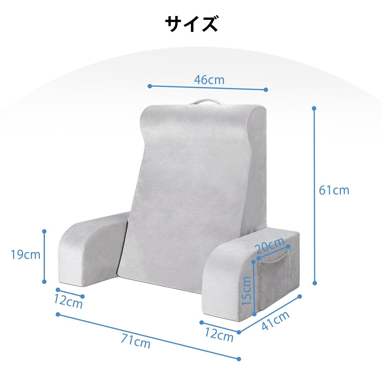 【数量限定】背もたれクッション 高反発 読書用クッション 軽量ベッドの上 読書枕 肘付きレストクッション テレビ枕 持ち運び便利 カバー洗える ソファー用 靠枕 グレー (ライトグレー)