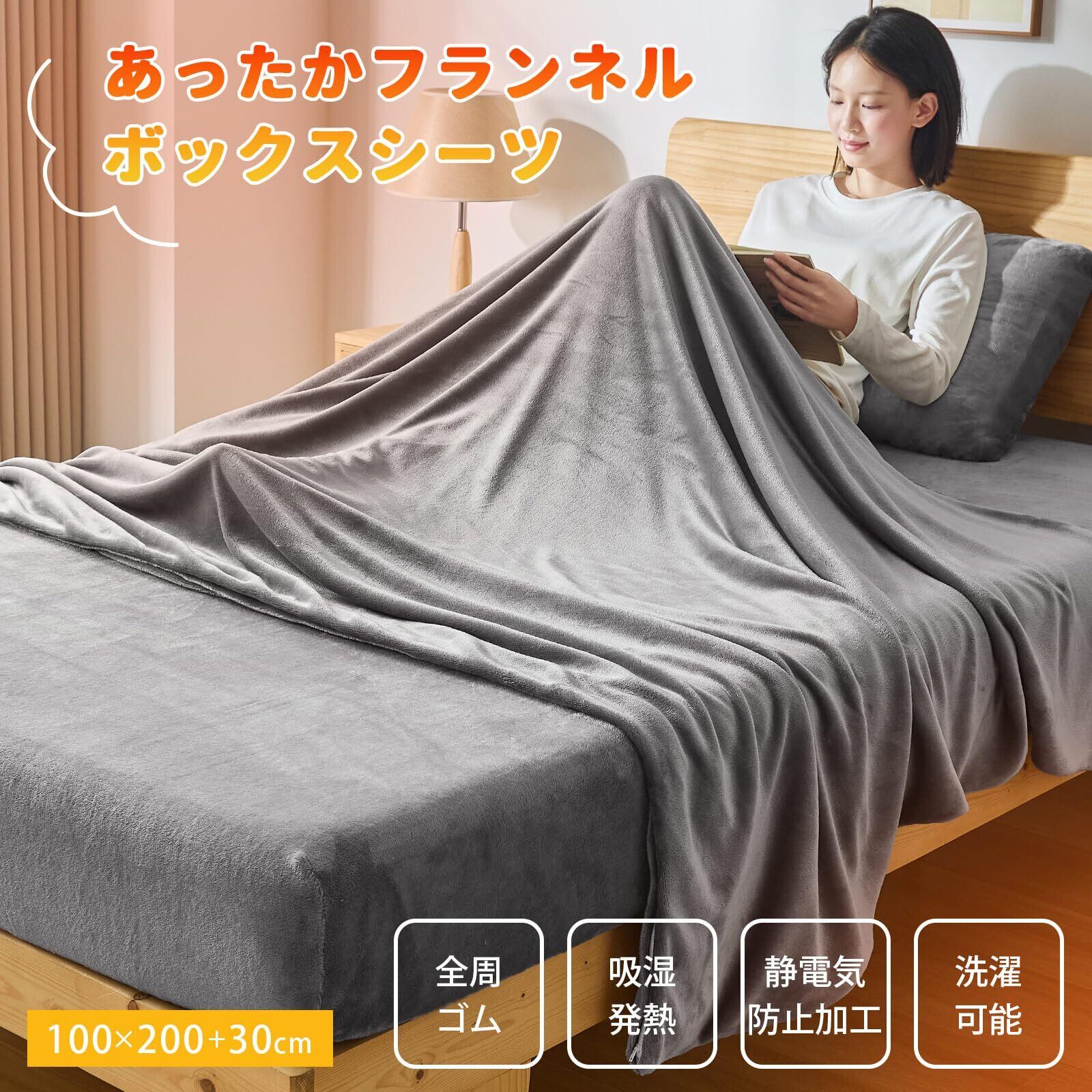 【特価セール】AZRA ボックスシーツ シングル 冬 あったか シーツ ベッドカバー マットレスカバー 敷布団カバー 冬 あったか 静電気防止 抗菌防臭 マイクロファイバー おしゃれ フランネル地 洗える マチを広めの30cm (シングル 100×200×30cm グレー)厚さ5 cm~25 cmのマットレスまで対応