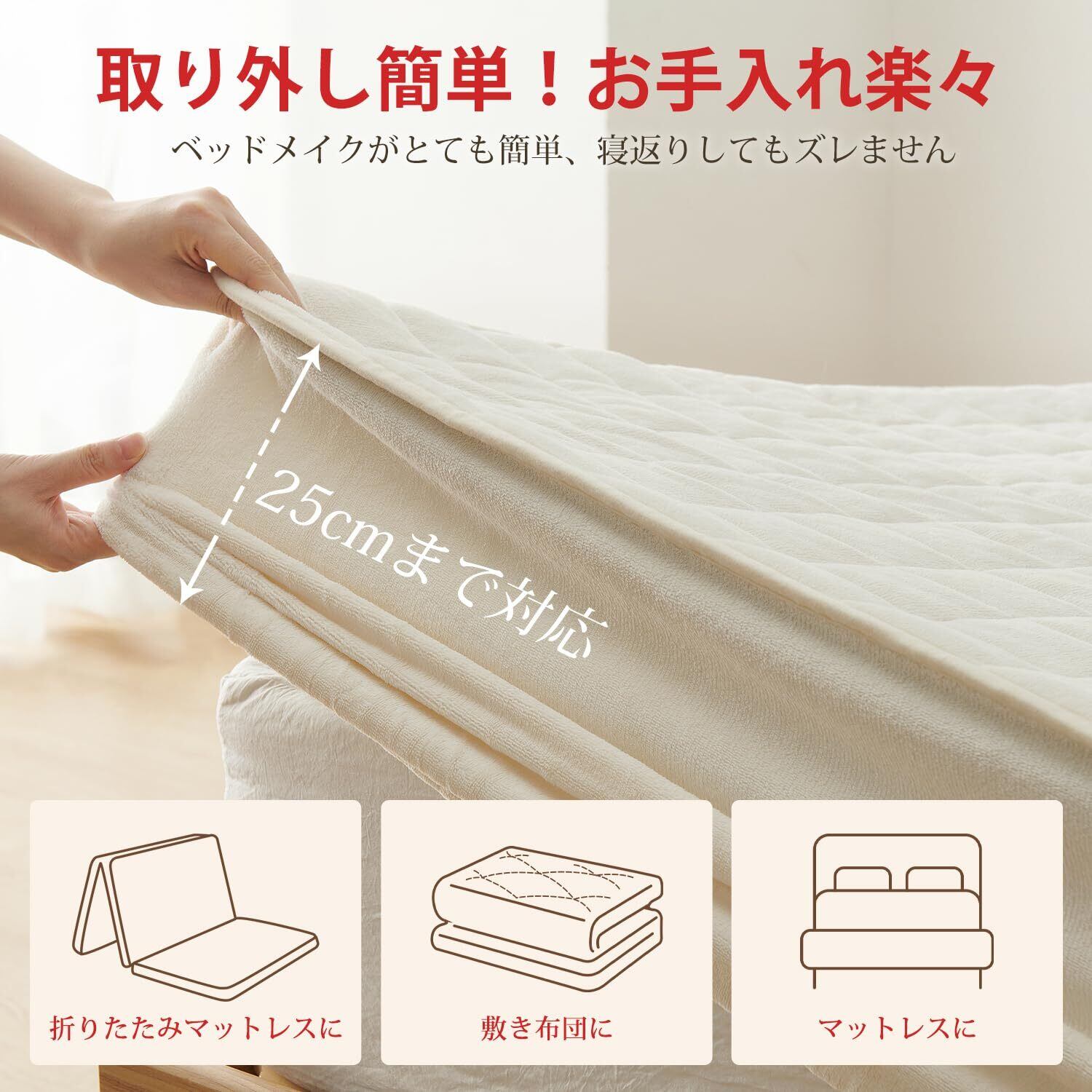 クモリ(Kumori) 冬用 ボックスシーツ シングル あったか 1枚2役 マイクロファイバー 極暖 フランネル 吸湿発熱 TEIJIN(帝人)中綿 毛布タッチ 敷きシーツ ふわふわ 静電気防止 マットレスカバー 洗える 暖かい 毛布タッチ ベッドカバー アイボリー シングル・100X200cm