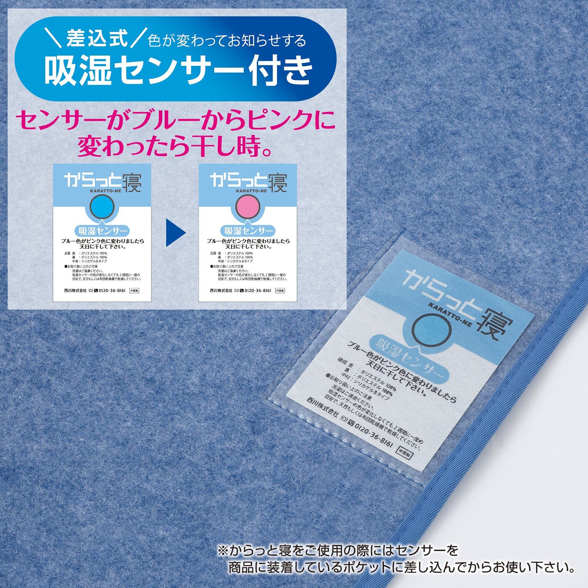 nishikawa 【 西川 】 からっと寝 敷くだけ簡単 寝具用除湿シート シングル ブルー 特殊シリカゲルが汗や湿気を吸収してさらっと快適 イヤな臭いも消臭 防ダニ 防カビ 吸湿センサー付き 布団用除湿マット 湿気取 防湿 207278805