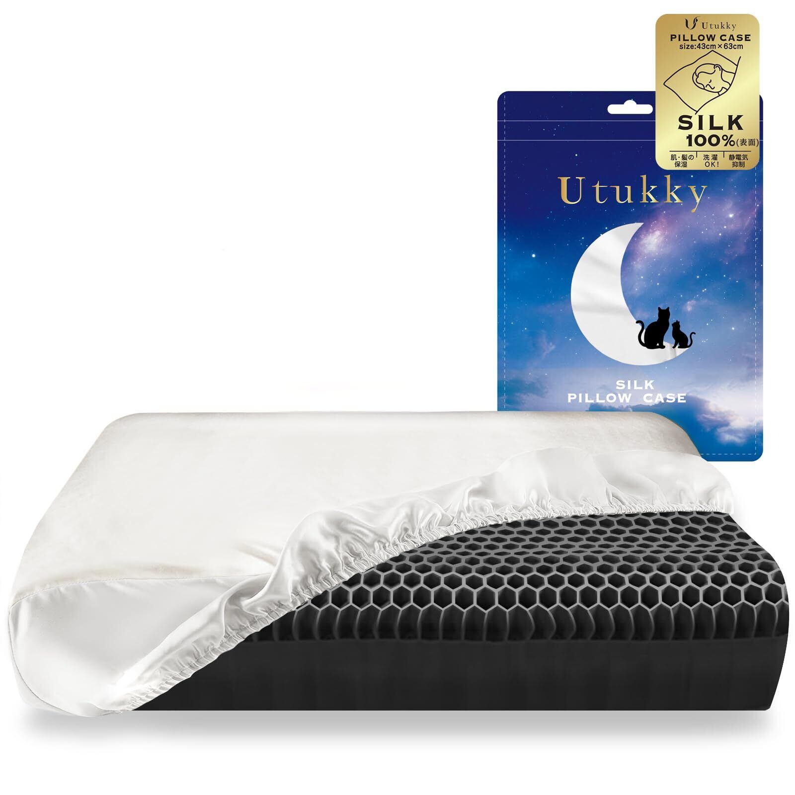 【数量限定】Utukky シルク 枕カバー 伸縮性【TVで紹介】片面100%シルク 枕カバー 洗える 43×63cm 寝癖軽減 抗菌防臭 美髪 美肌 敏感肌に優しいピローケース 四季適応 新年ギフト クリスマス 贈り物 誕生日 プレゼント 1枚入れ (アイボリー)