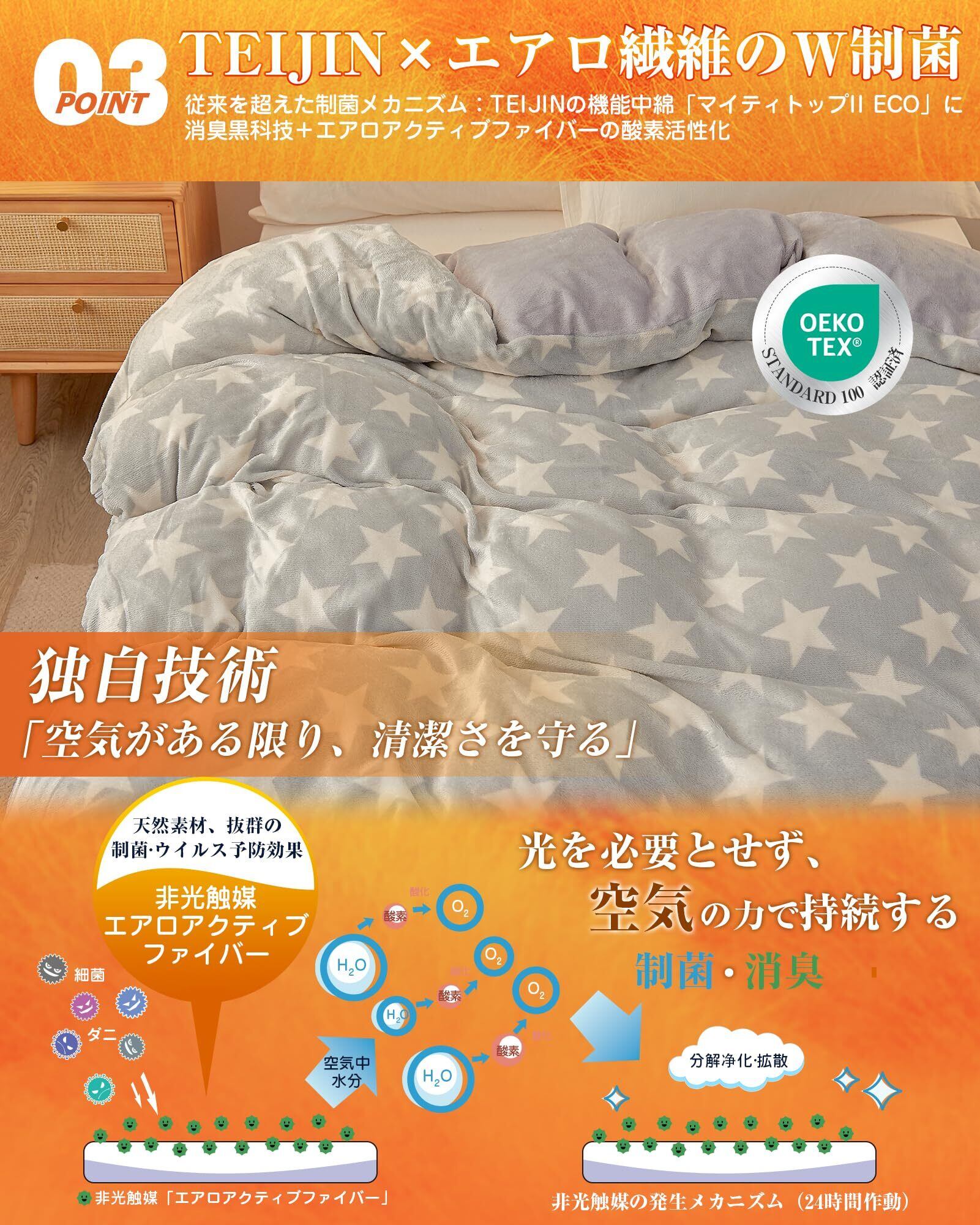 【数量限定】VK Living 掛け布団カバー シングル 冬 あったか フランネル 【SUPER HOT】 速暖保温 かけふとんカバー 布団カバー 毛布にもなる2WAY仕様 マイクロファイバー 吸湿速乾 柔らかい 丸洗いOK 製菌消臭 掛けカバー 全開ファスナー 8ヶ所ループ付き 150×210cm スター柄・グレー