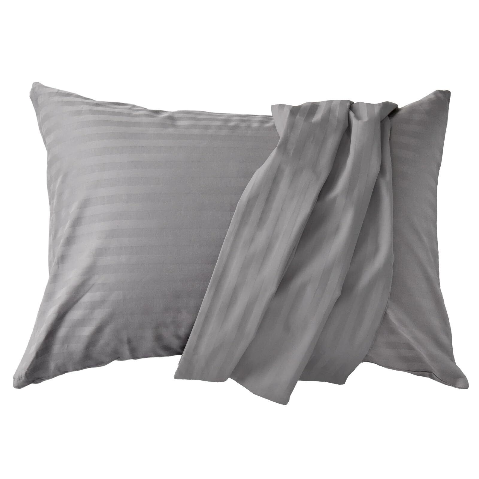 枕カバー 日本製 綿100% サテンストライプ 防ダニ 超長綿 315本高密度生地 北欧 ホテル仕様 ピローケース シルクのような艶 エトワール (シルバーグレー, 43×63cm枕用)