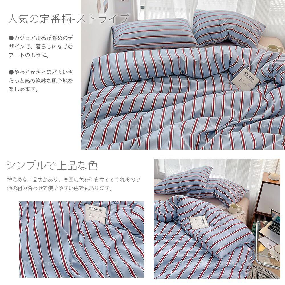 「§zz.luxi」布団カバーセット シングル 3点セット ins ストライプ シンプル 寝具カバー 洋式・和式兼用 ベッドカバー 掛け布団カバー 韓国 ボックスシーツ 枕カバー シーツカバー 肌に優しい ピーチスキン加工 北欧風 オールシーズン(レッドブルー シングル 3点セット)
