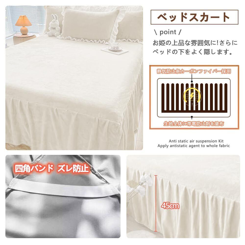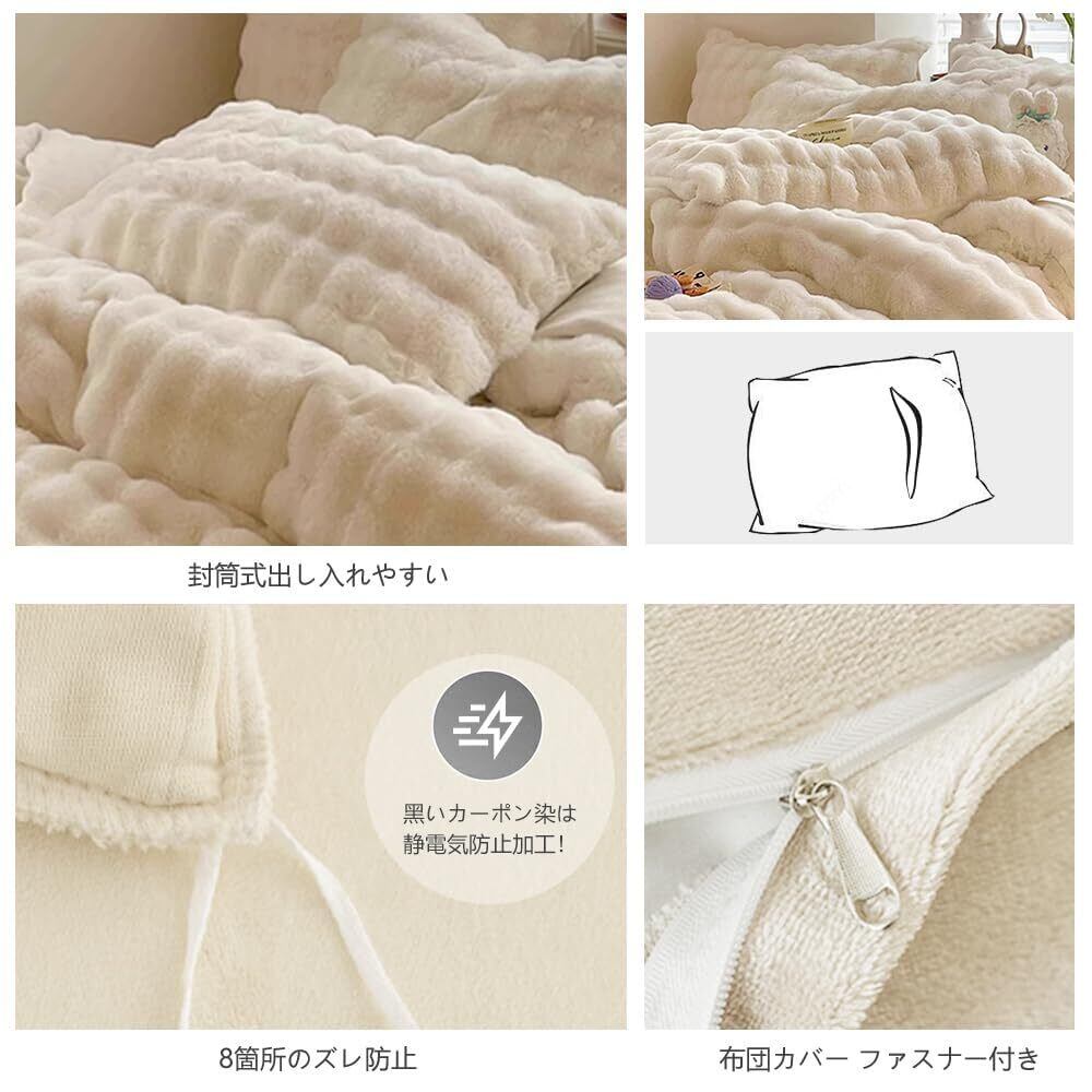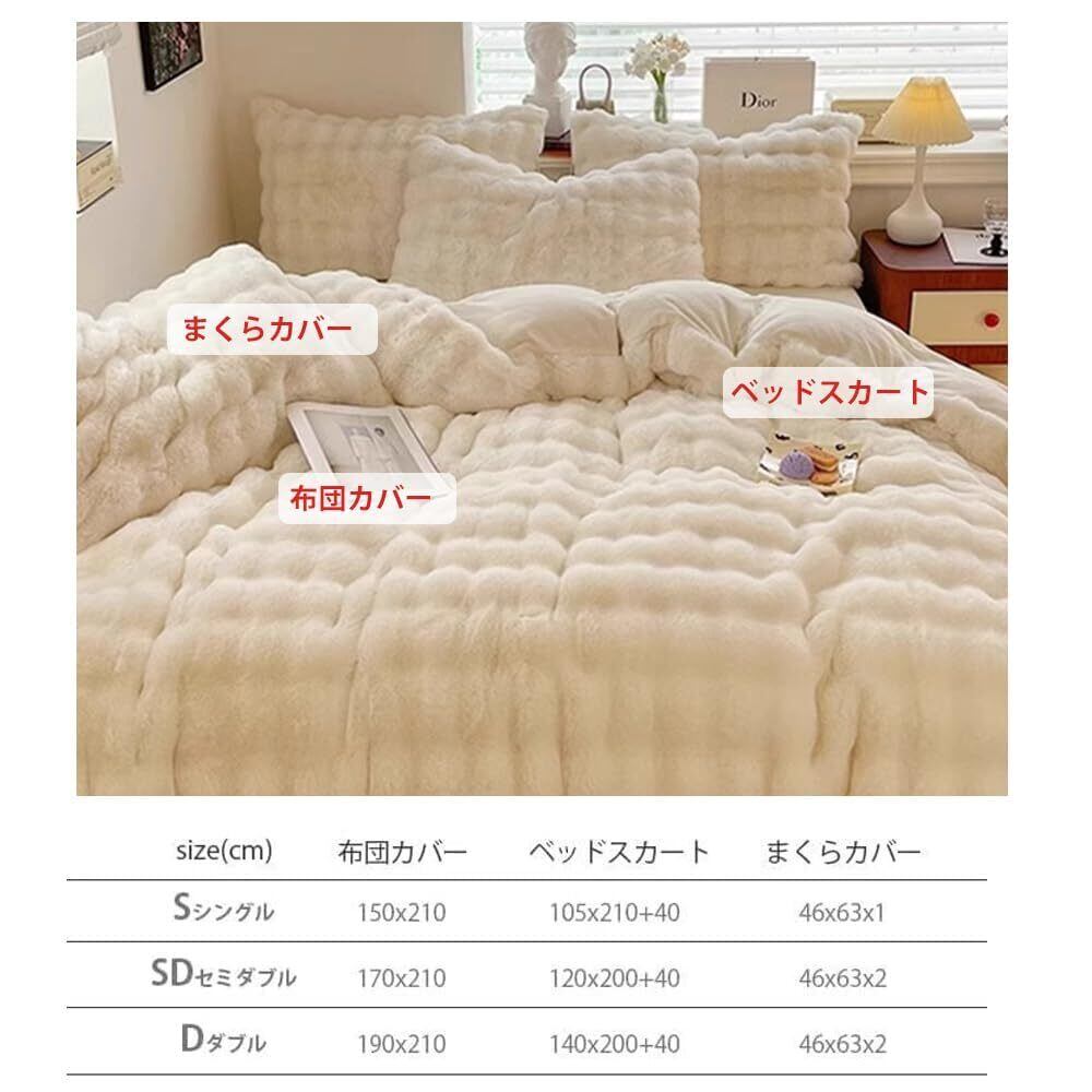 布団カバーセット ラビットファー調 冬用 あったか 4点セット フランネル マイクロファイバー 厚手 もこもこ 静電気防止 ふわふわ 暖かい 冷え対策 洗える 吸湿発熱 昼寝 高級 寝具カバー 姫系 ベッドスカート 掛け布団カバー 枕カバー (ホワイト秋冬, ダブル)