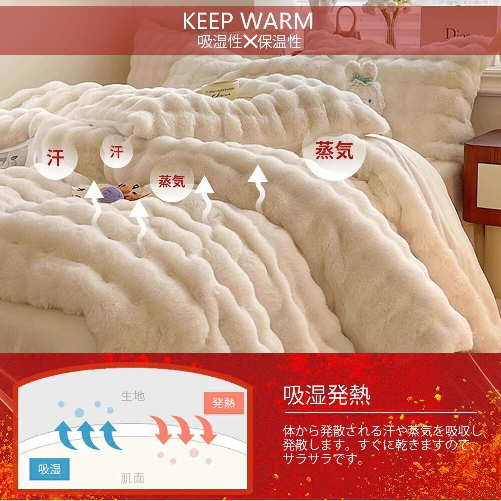 【極上暖かい&ラビットファー調加工】表面は密度の高いラビットファー調生地、冬の冷えた空気の中でも優しく暖かい使い心地です。うさぎの毛皮のように柔らかくふわふわで、厚みがあるので、布団を中に入れず毛布としても使用可能。裏地はフランネル ( 極細マイクロファイバー)で編み上げた、入った瞬間からすぐに暖かさを感じる事ができます。冬の寒い時期には欠かせない一品です。