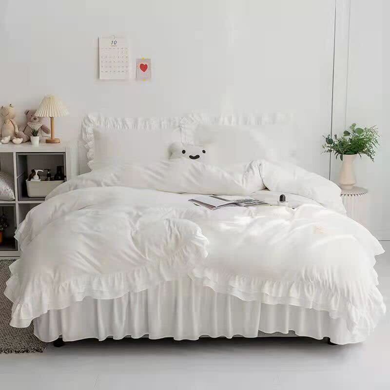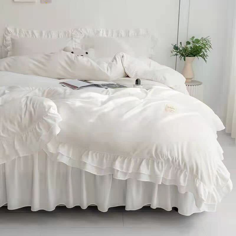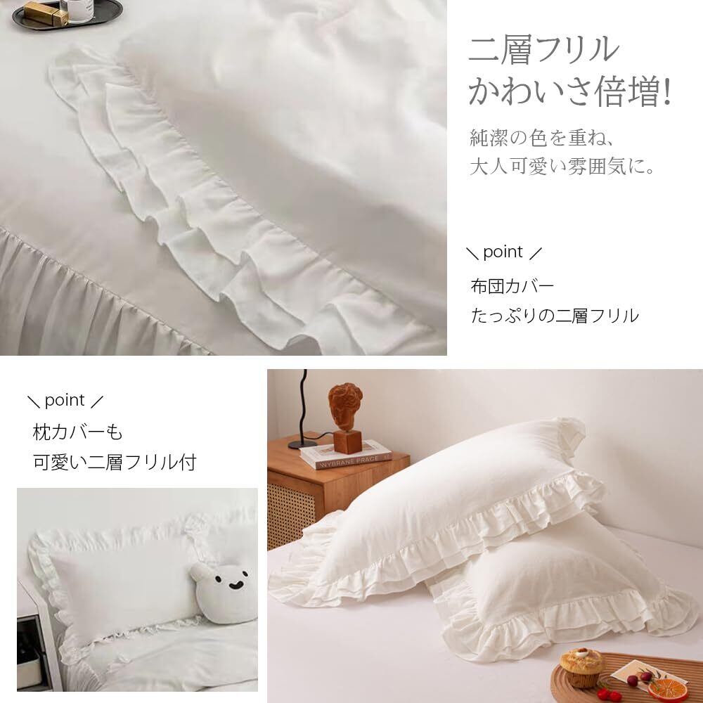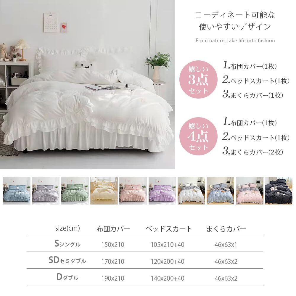 【新春セール】布団カバー シングル セミダブル ダブル 3/4点セット 布団カバー セット フリル 姫風 可愛い シングル掛け布団カバー ベッドスカート 枕カバー カバーシーツセット 肌に優しい フリル付きおしゃれ 北欧 ホテル 安心 清潔 丸洗いOK (ホワイト, Sシングル-3点セット)