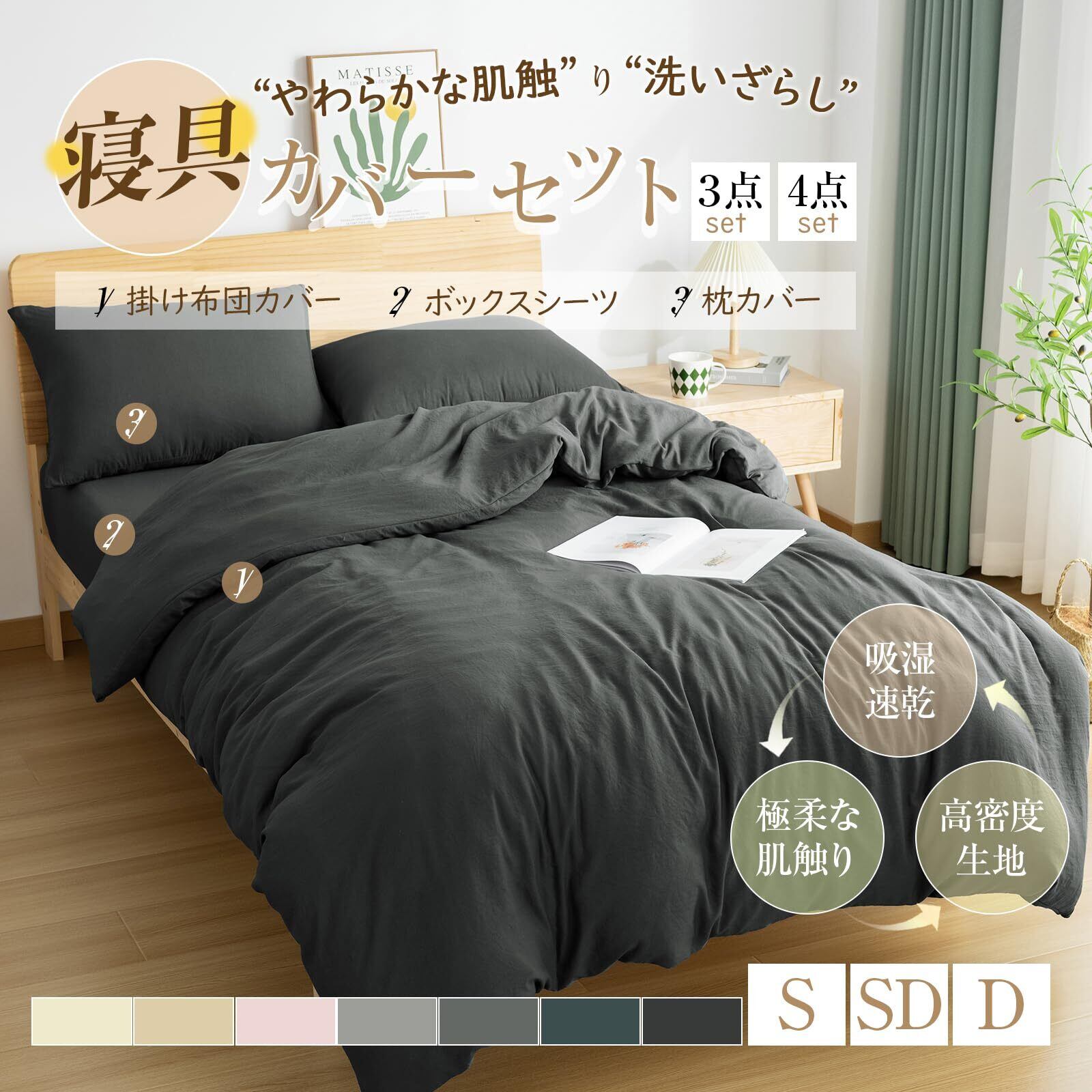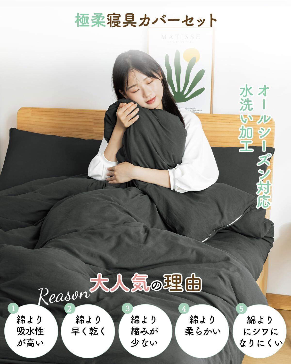 【在庫処分】Housecover 布団カバー シングル 3点セット 寝具カバーセット【水洗い加工&超柔らかい】掛け布団カバー 洋式ベッド・和式布団兼用 ボックスシーツ 掛け布団カバー 3点セット 洗いざらしシワ加工 やわらか 肌触り 吸水速乾 丸洗い 無地 シンプル オールシーズン( シングル・3点セット ブラック)