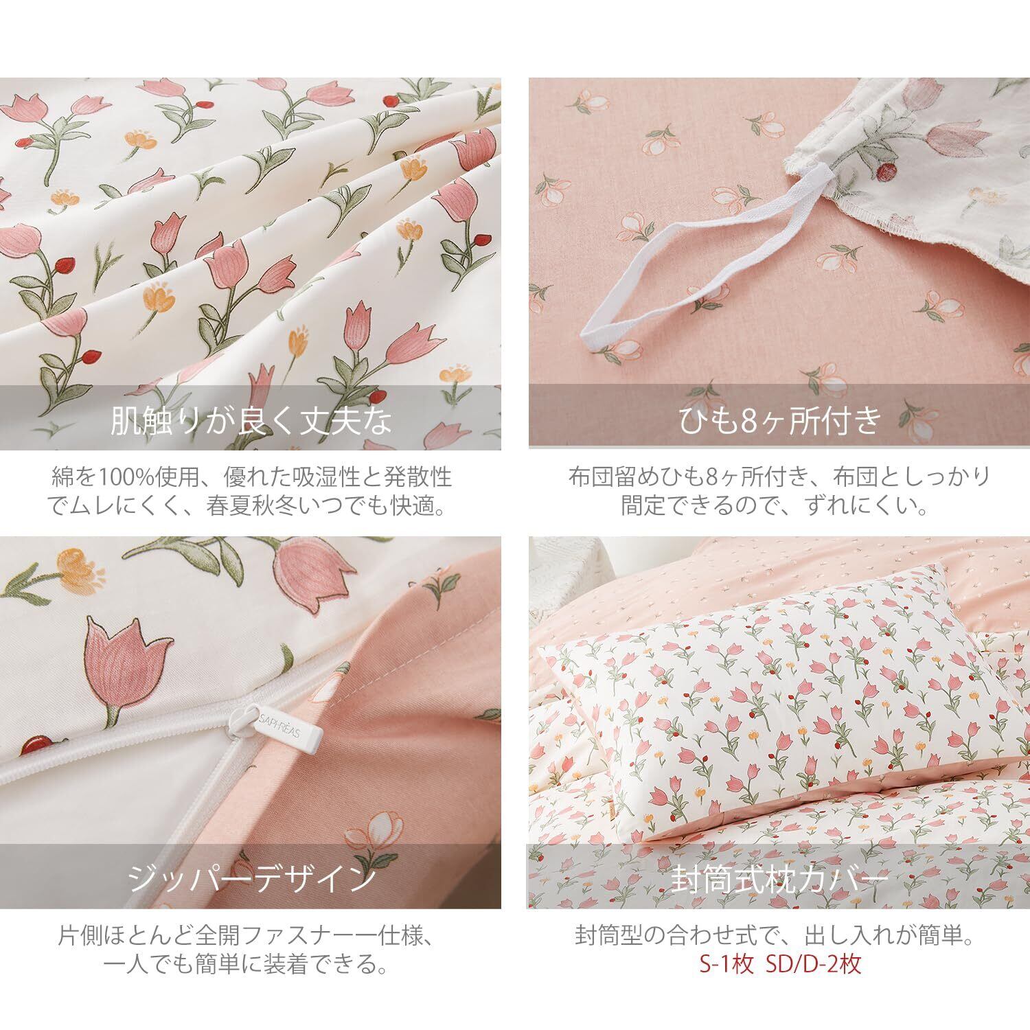 SAPHREAS 布団カバーセット 掛け布団カバー 寝具カバーセット 綿100% 3点セット洋式ベッド・和式布団兼用 シングル 洗い替え速乾 肌ざわりが良い 快眠 贅沢品質 ボックスシーツ 枕カバー 四季通用