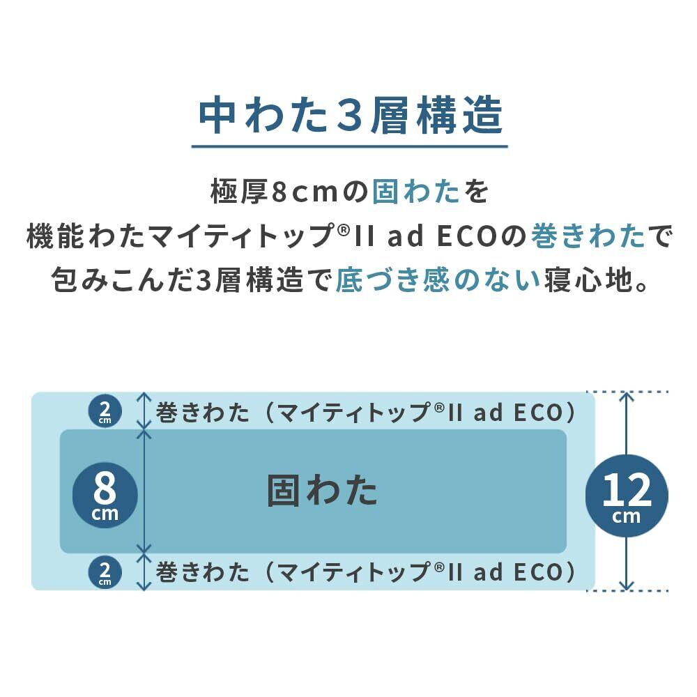 抗菌防臭・防ダニ機能付きで、ボリュームも12cmと床付き感がないしっかりした三層敷き布団になります。