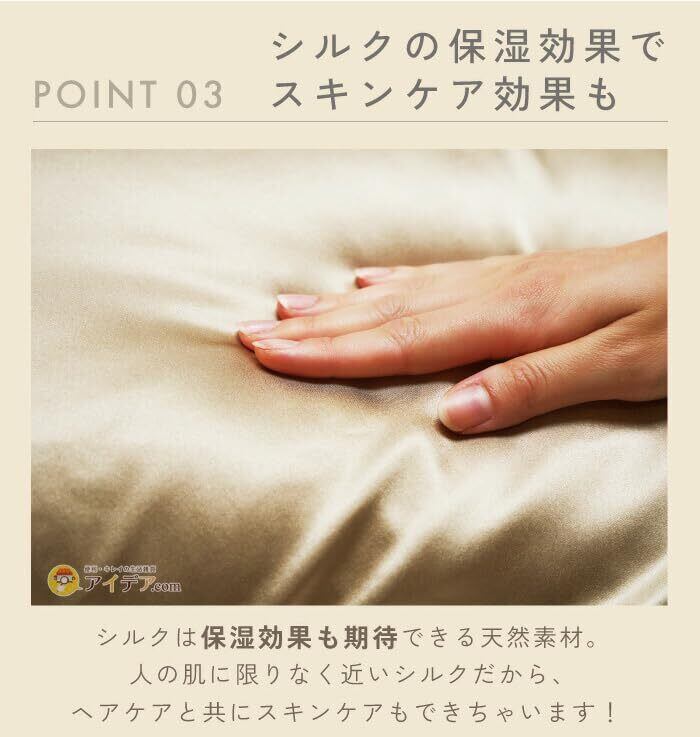 シルクでサラリ。髪、お肌を守る。表生地シルク100%。サラリとした触り心地。寝ている間に絡む髪や顔、デコルテをやさしくカバー。筒状だから枕を差し込むだけ。パッド部裏地エアメッシュ。パッド付きだからズレにくく、長い髪の毛をカバー。睡眠中の摩擦に。●表生地 絹 100%