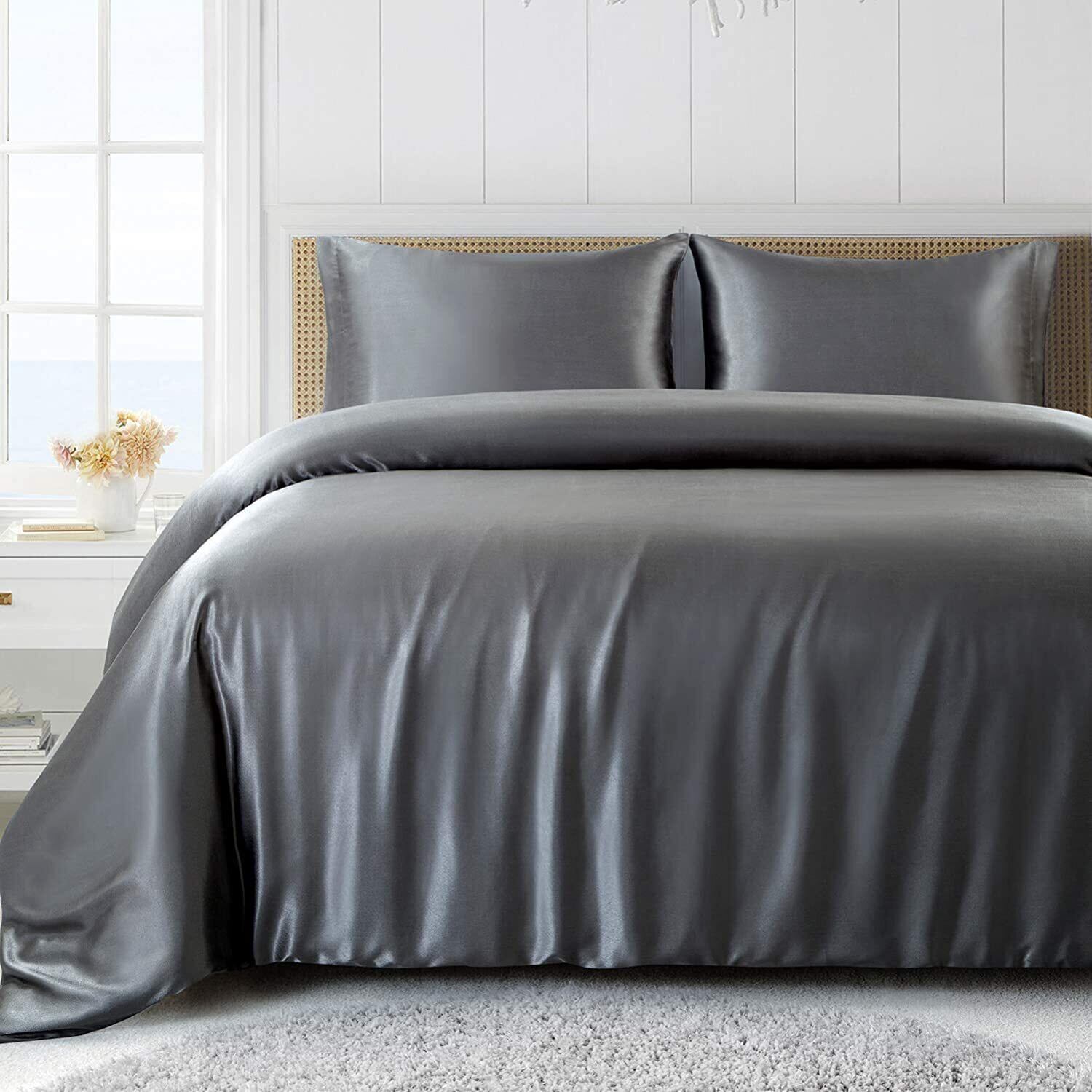 Forhomelife 布団カバー ダブル 4点セット シーツ ツルツル 掛け布団カバーセット ダブル サテン 布団カバー ベッドカバー 枕カバー ベッドシーツ ボックスシーツ 洋式・和式兼用 美肌 美髪 両面シルクタイプ 滑らかな材質 グレー