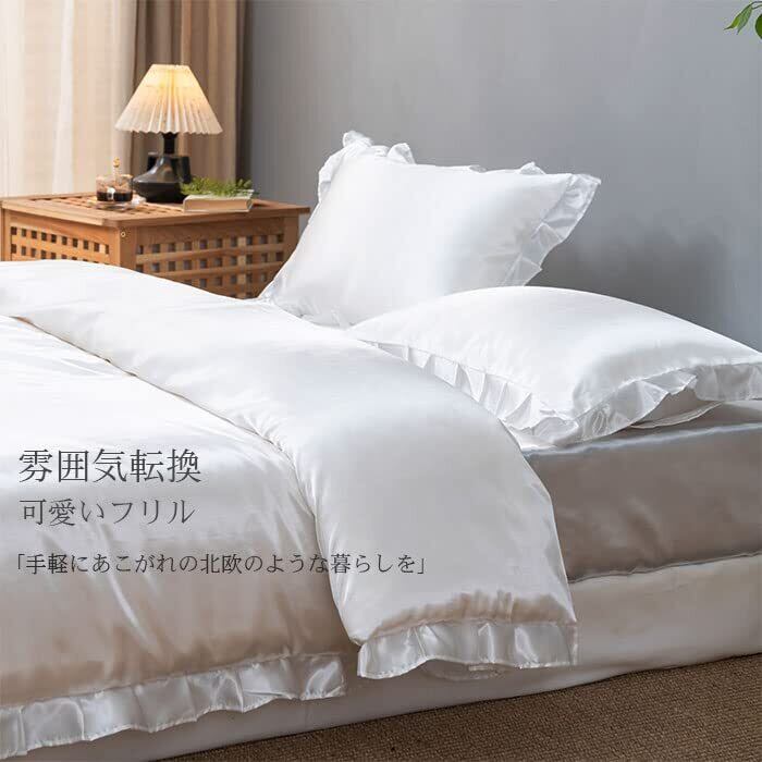 布団カバー セット 涼感 おしゃれ ツルツル ボックスシーツ 冷感 夏用 シルクみたい サテン ツヤ 光沢 シングル セミダブル レーヨン 柔らか 可愛い 布団カバーセットフリル付き 優しい 肌触り 寝具 掛布団 おしゃれ 北欧 まくら 丸洗いOK 和式 洋式 (グレー, シングル3点セット)